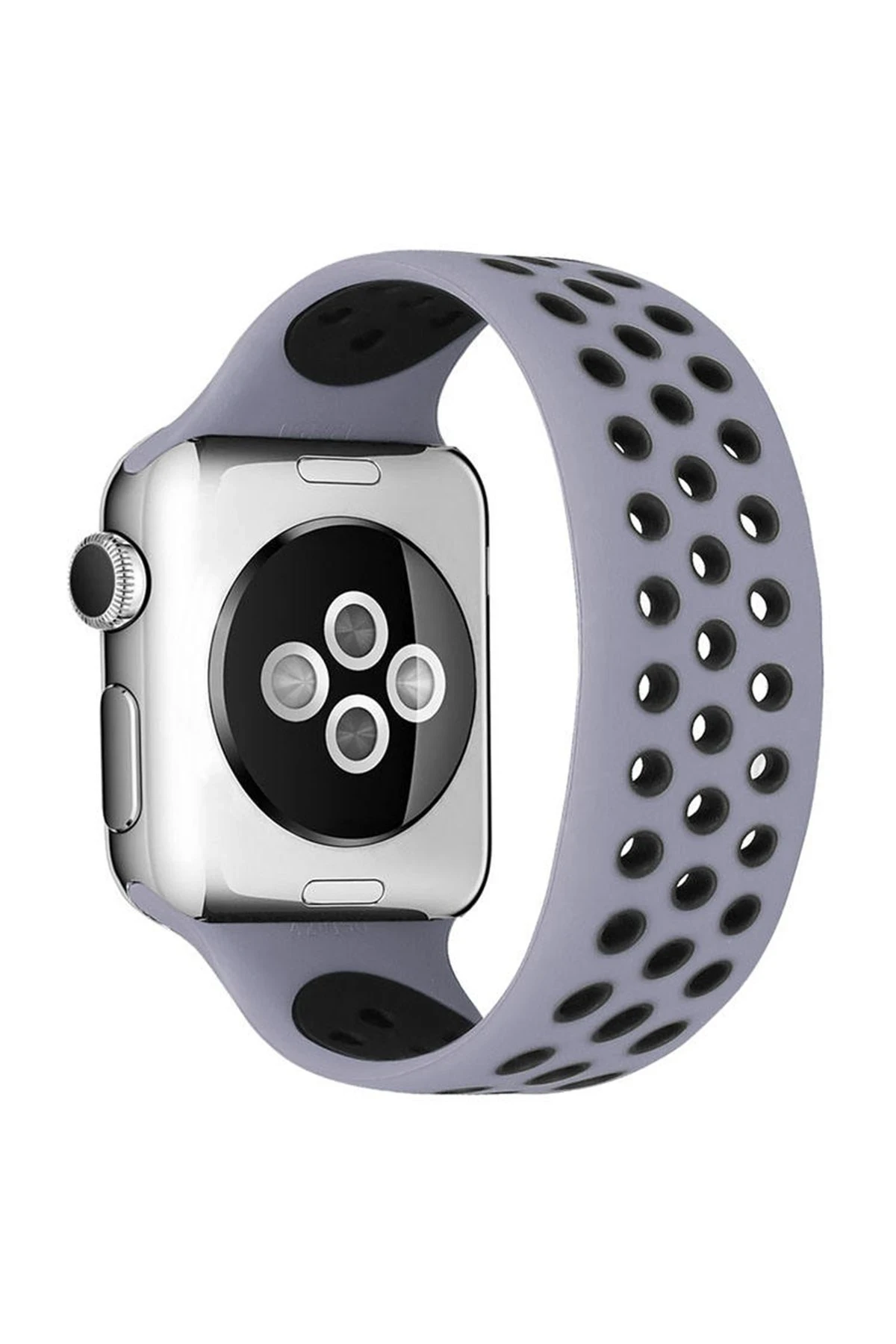 Newface Apple Watch 42mm Ayarlı Delikli Silikon Kordon – Gri-Siyah