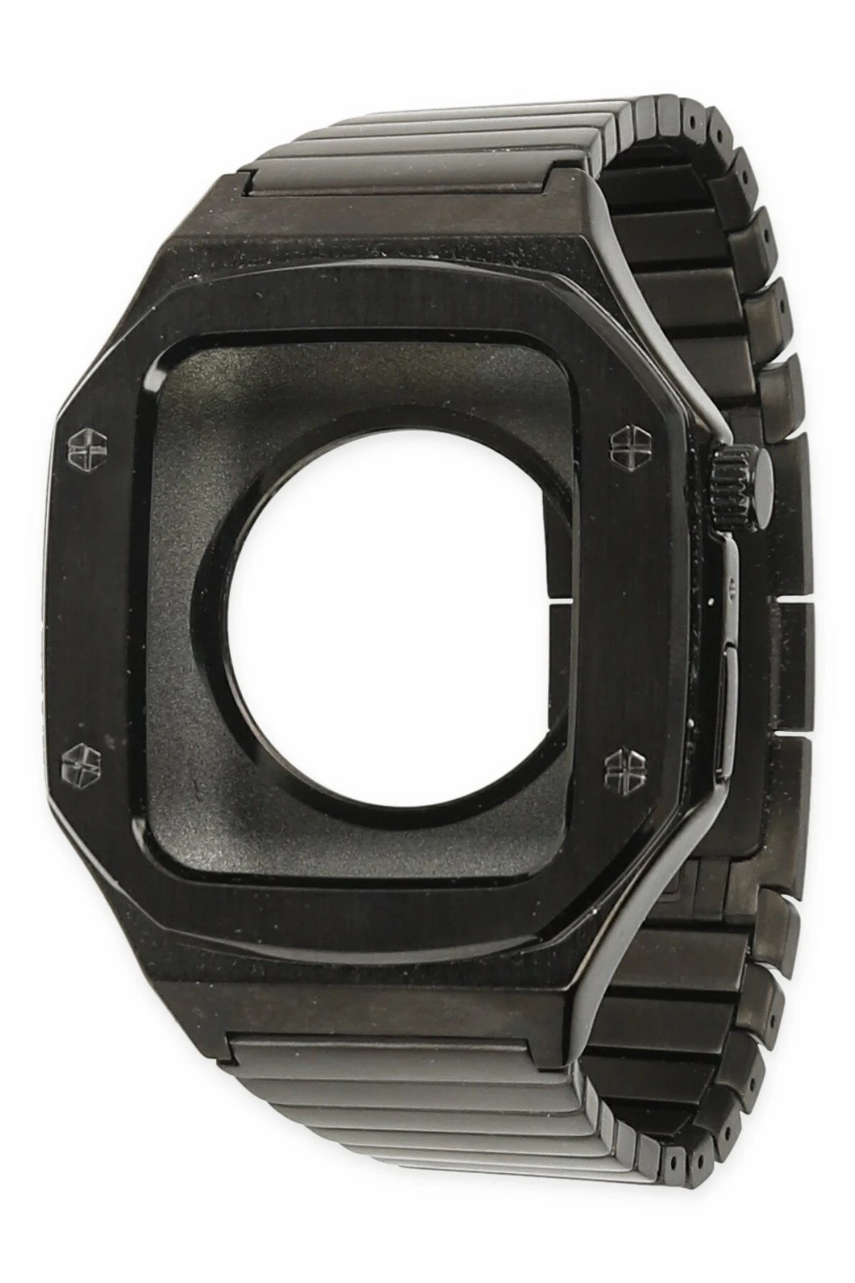 Newface Apple Watch 44mm KR402 Metal Kasa Silikon Kordon - Siyah