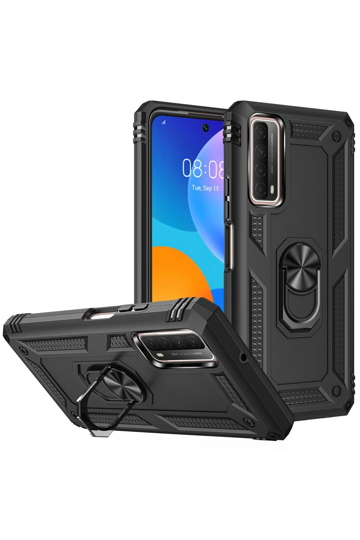 Newface Huawei P Smart 2021 Kılıf Sofya Yüzüklü Silikon Kapak – Siyah