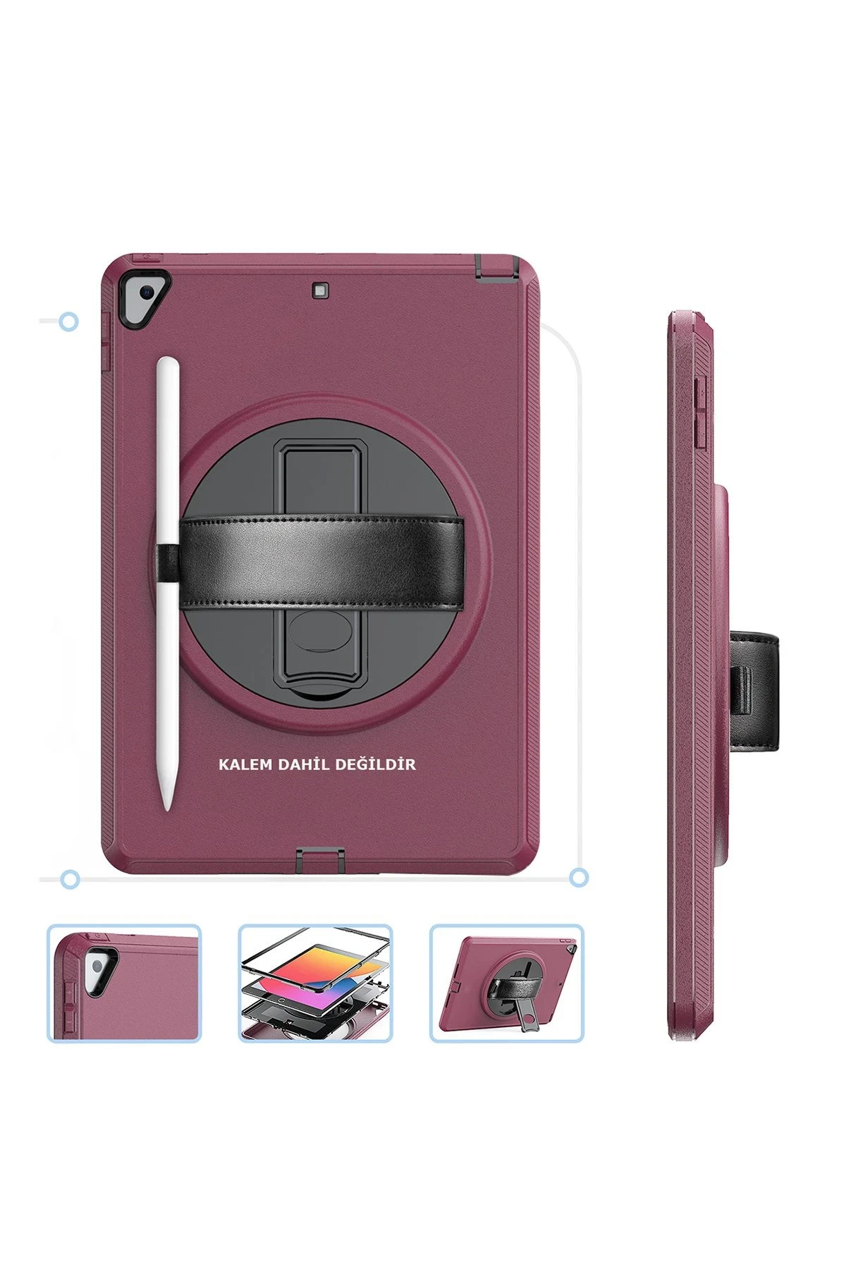 Newface iPad 10.2 (7.nesil) Kılıf Hand Strap Tablet Kılıfı – Mürdüm