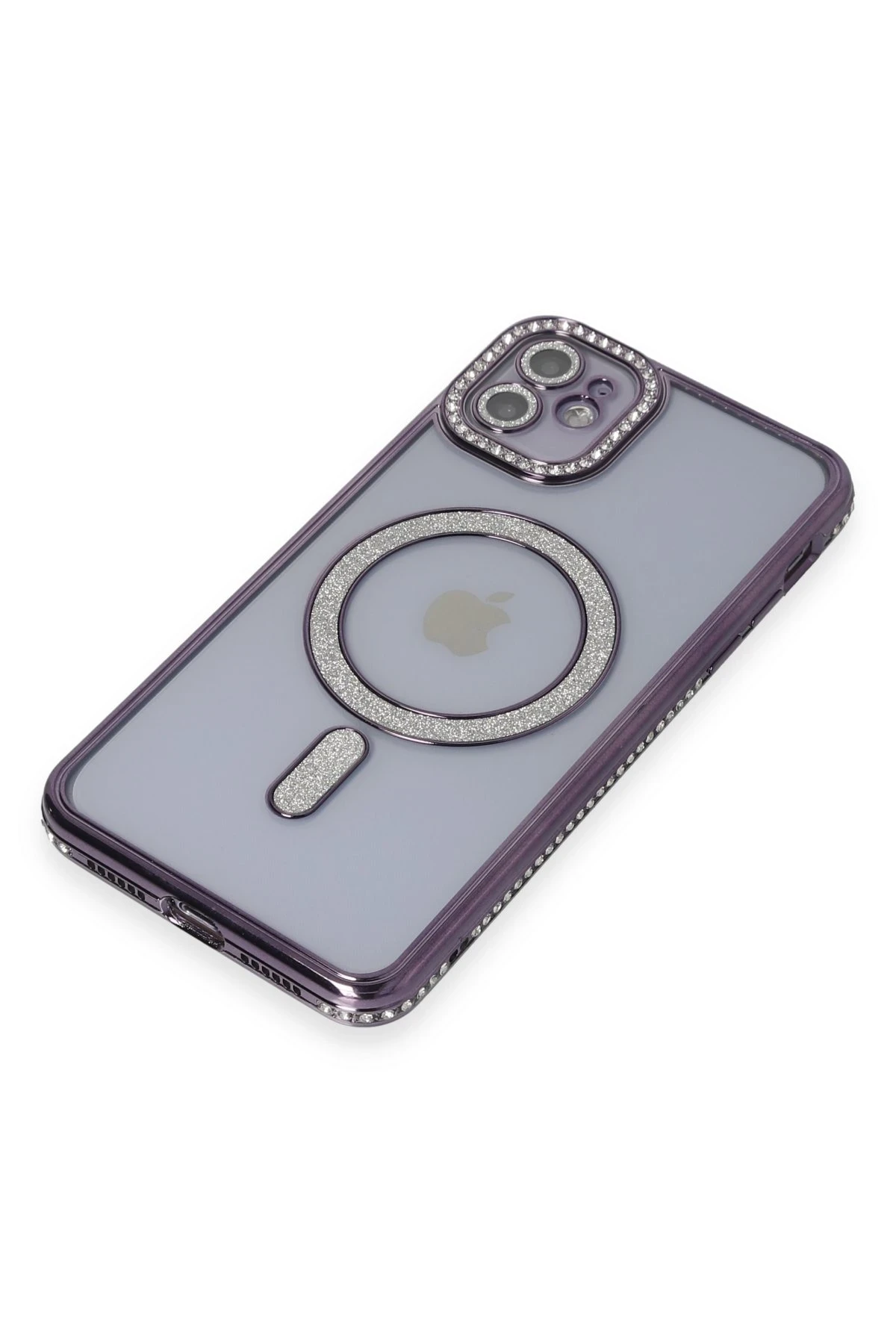 Newface iPhone 11 Kılıf Joke Simli Magneticsafe Kılıf – Derin Mor