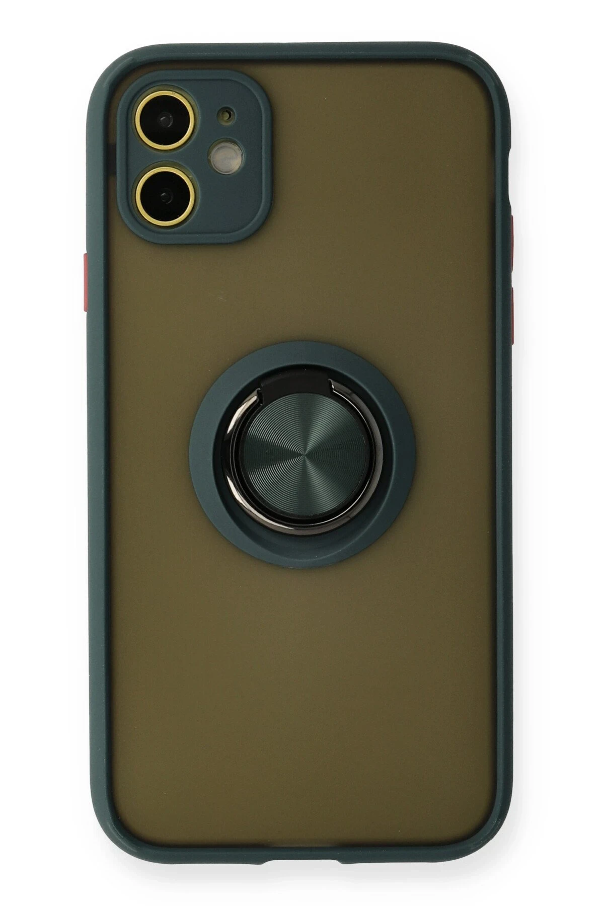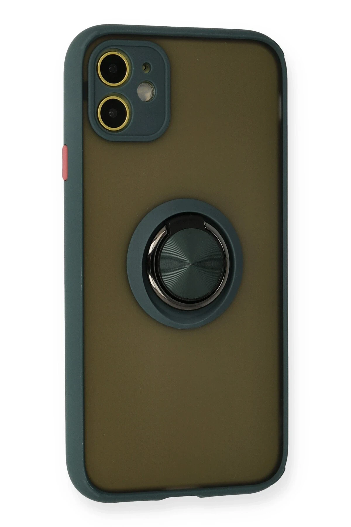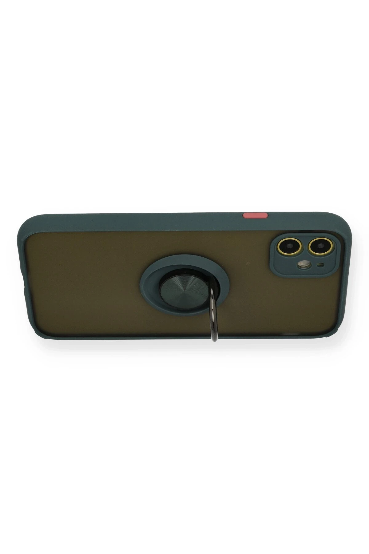 Newface iPhone 11 Kılıf Montreal Yüzüklü Silikon Kapak – Yeşil