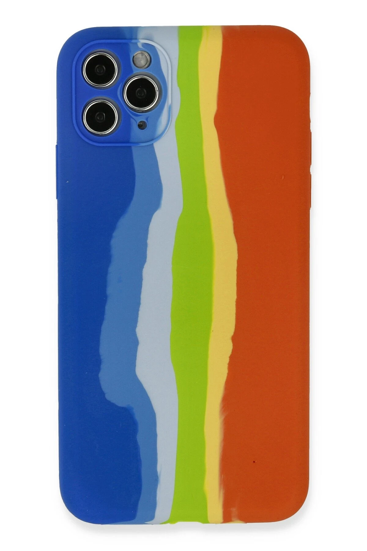 Newface iPhone 11 Pro Kılıf Ebruli Lansman Silikon – Mavi-Turuncu