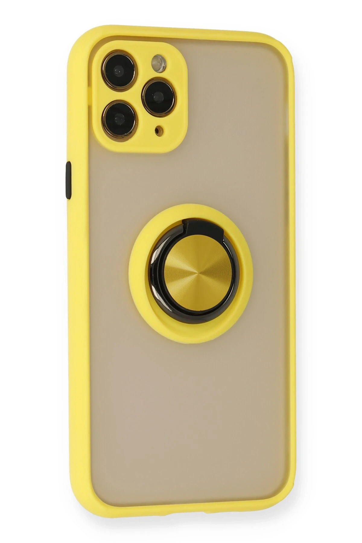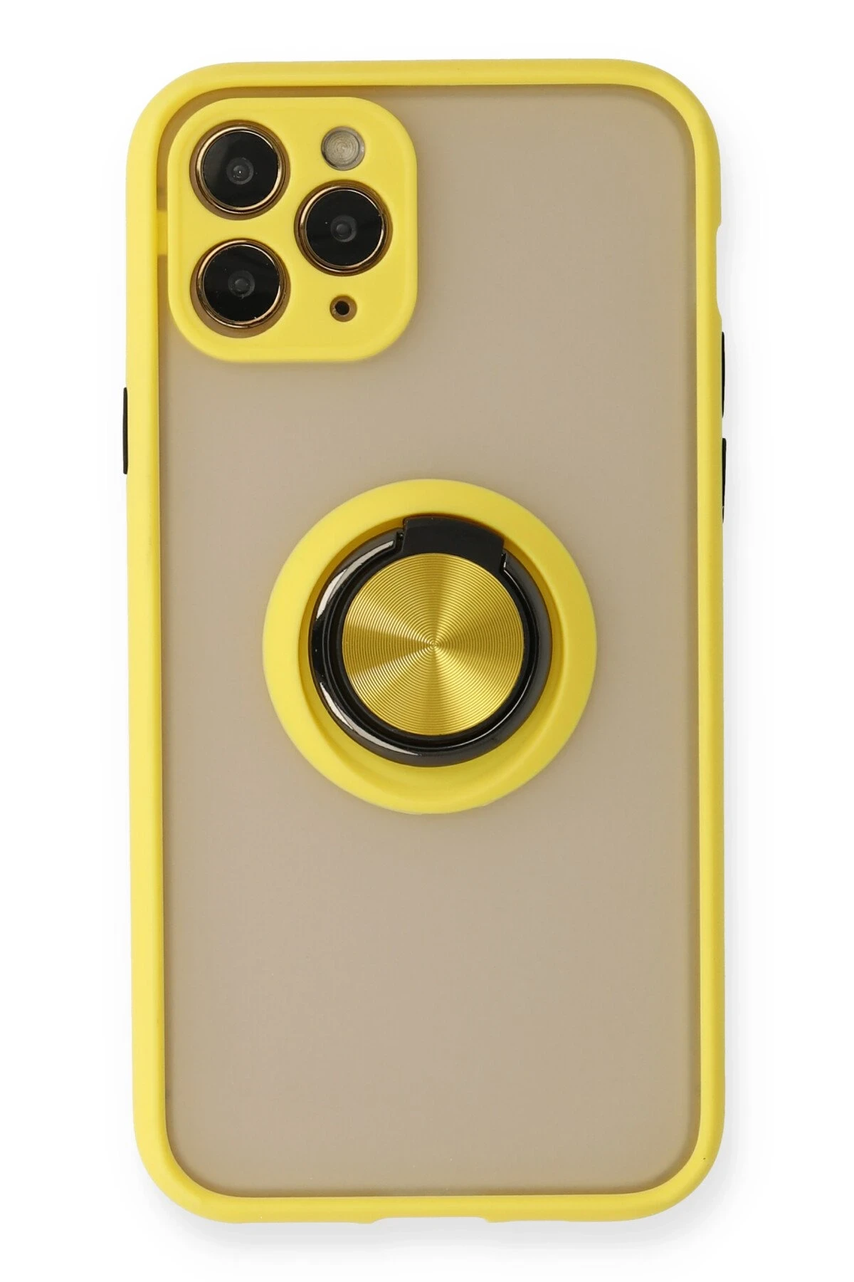 Newface iPhone 11 Pro Max Kılıf Montreal Yüzüklü Silikon Kapak – Sarı