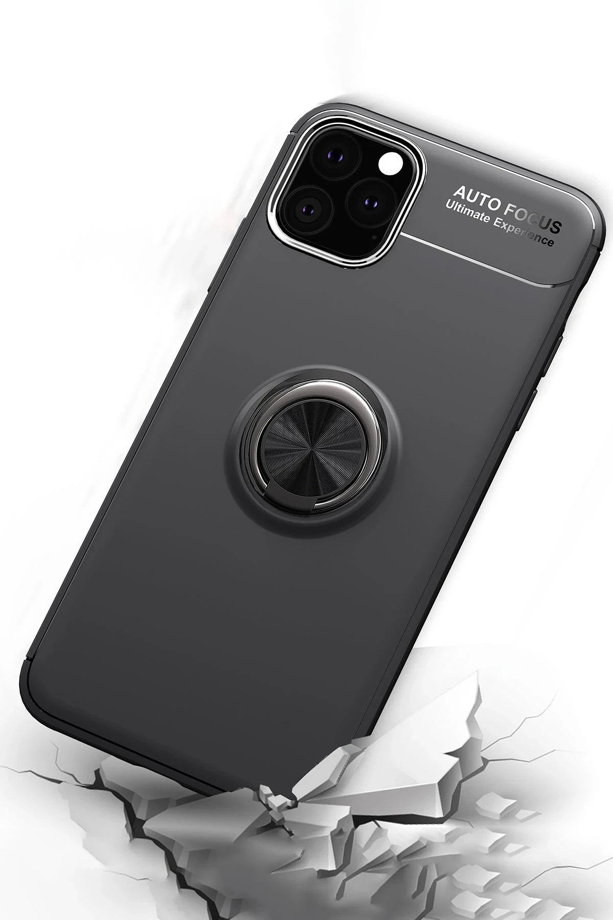 Newface iPhone 11 Pro Max Kılıf Range Yüzüklü Silikon – Siyah