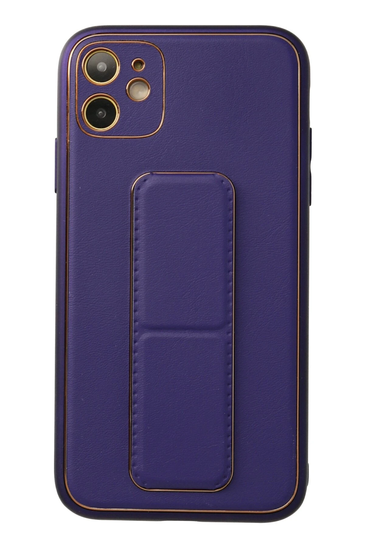 Newface iPhone 12 Kılıf Coco Deri Standlı Kapak – Mor