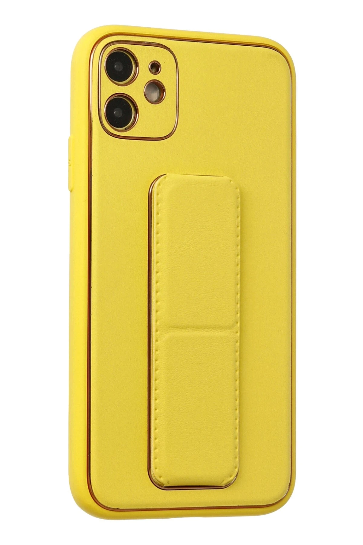 Newface iPhone 12 Kılıf Coco Deri Standlı Kapak – Sarı