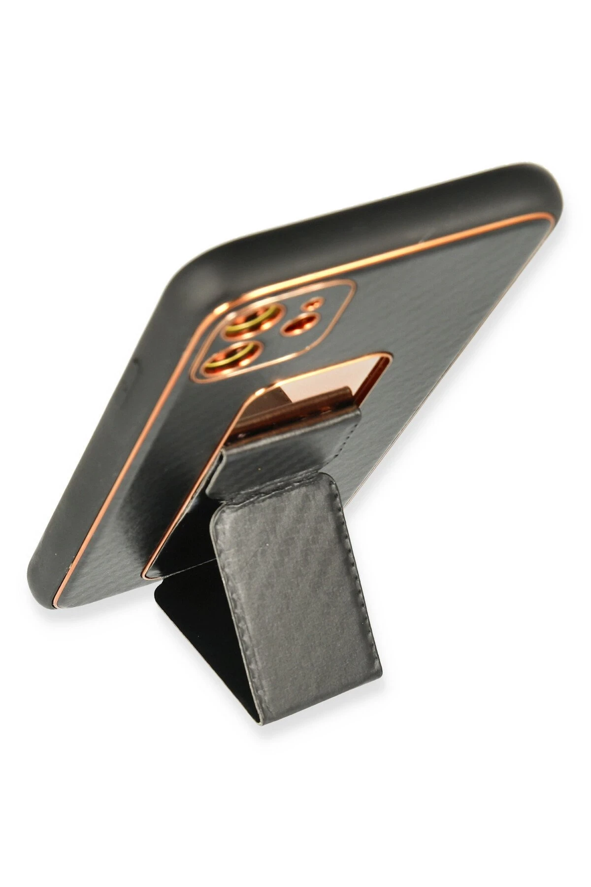 Newface iPhone 12 Kılıf Coco Karbon Standlı Kapak – Siyah