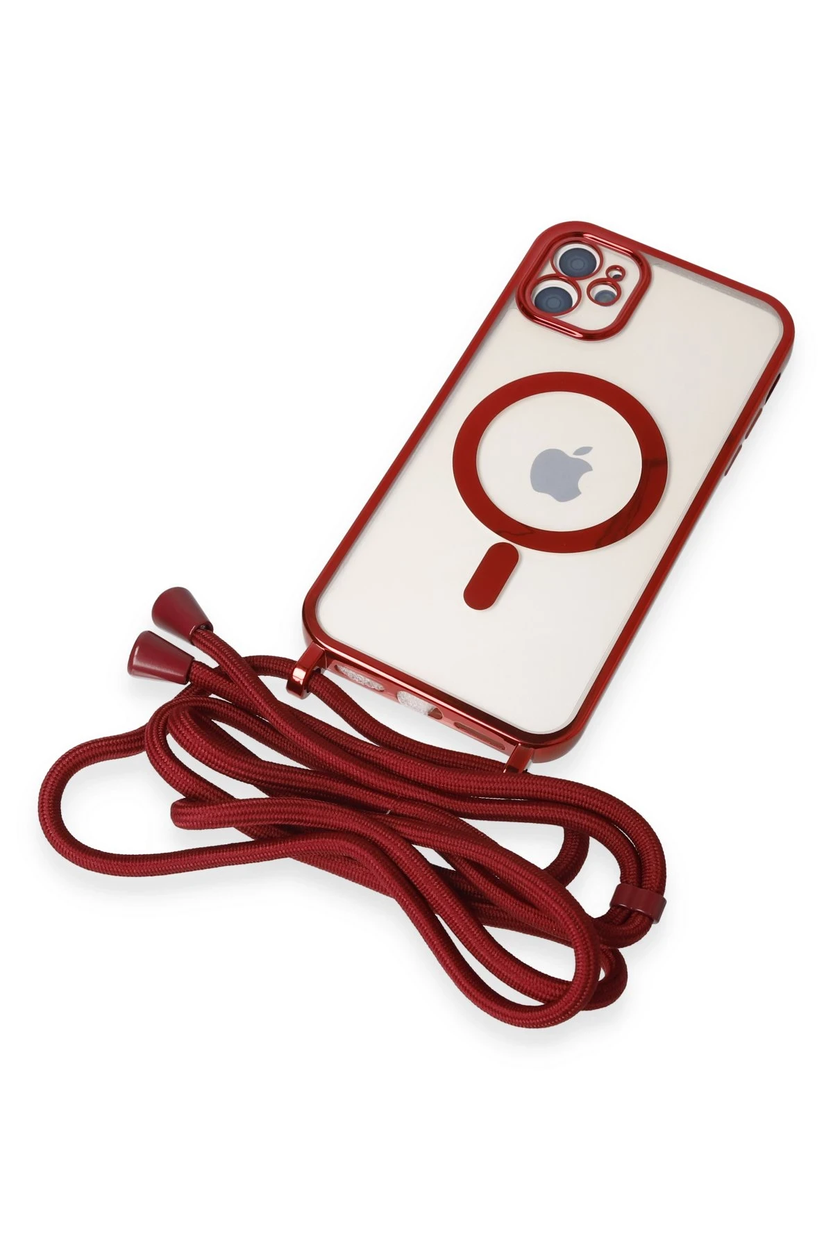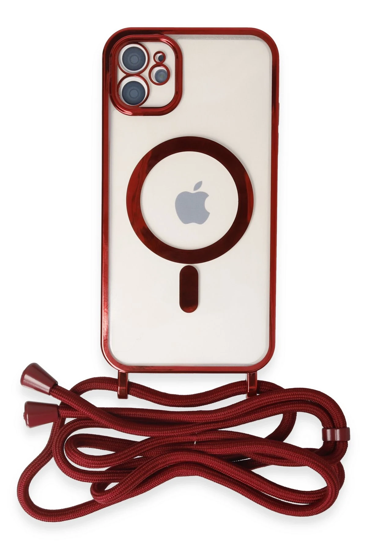 Newface iPhone 12 Kılıf Divo Lazer Askılı Magsafe Kapak – Kırmızı