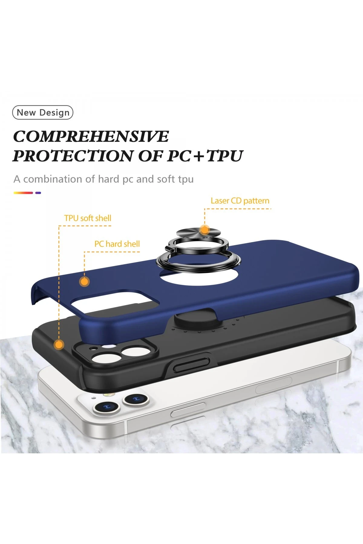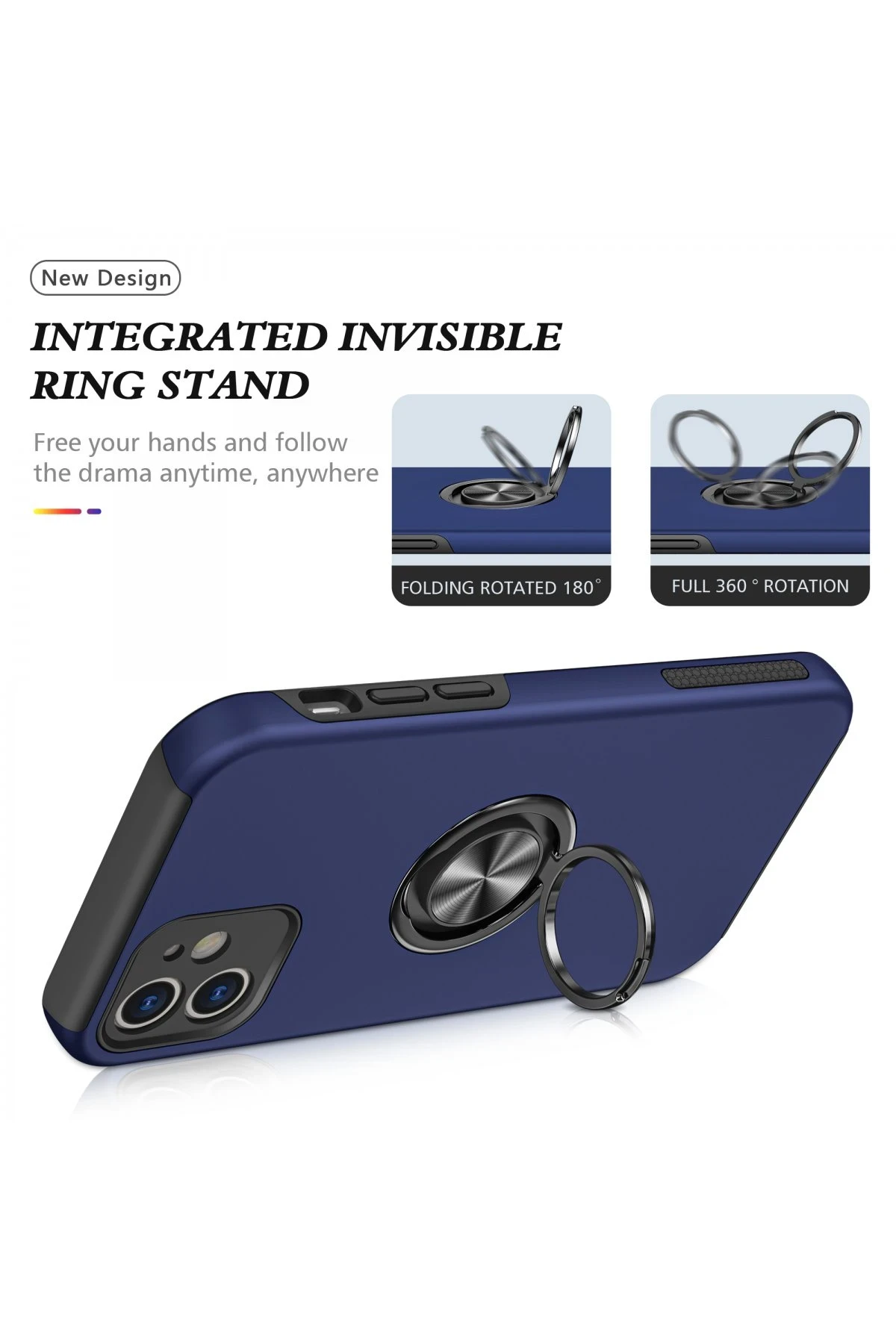 Newface iPhone 12 Kılıf Elit Yüzüklü Kapak – Lacivert