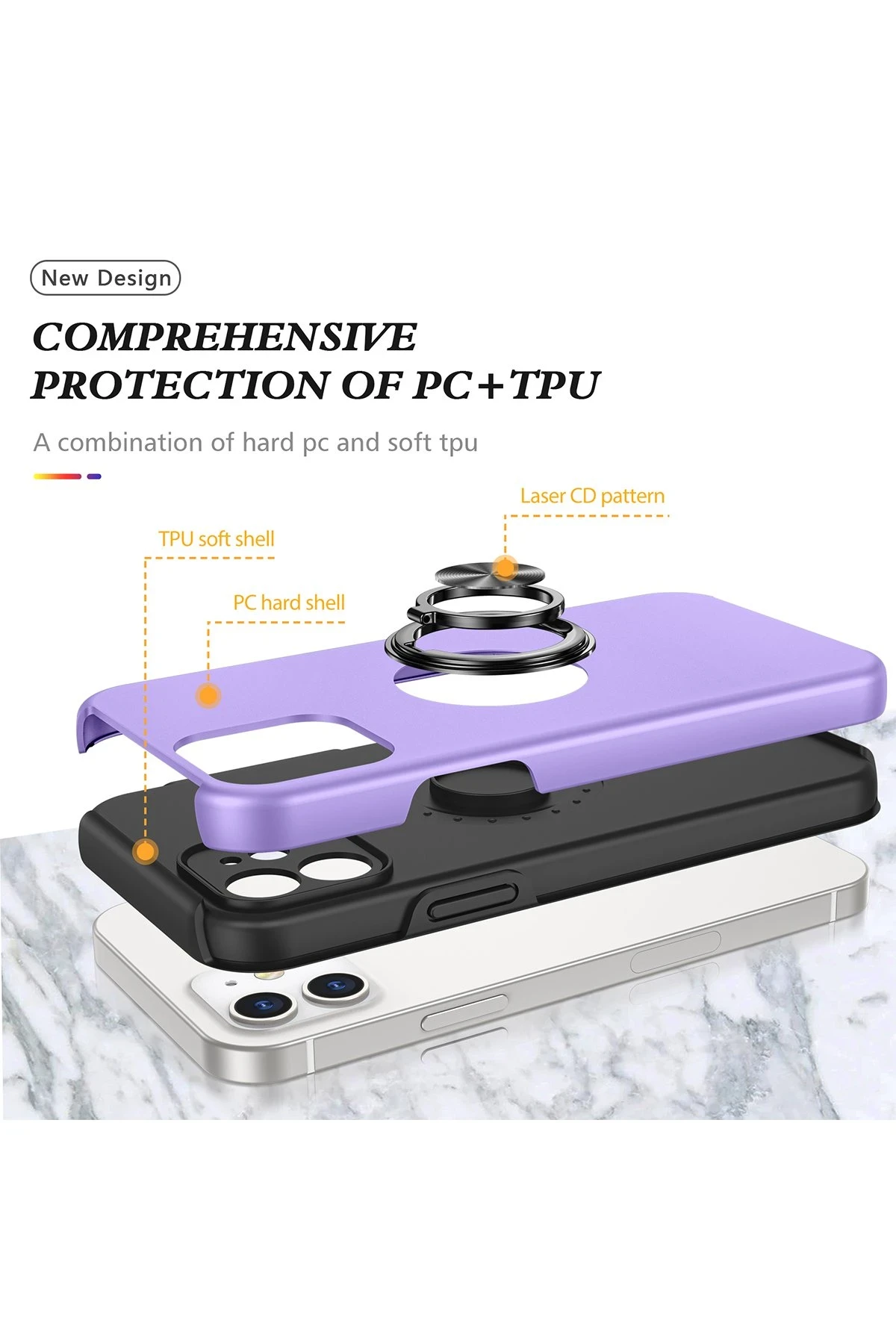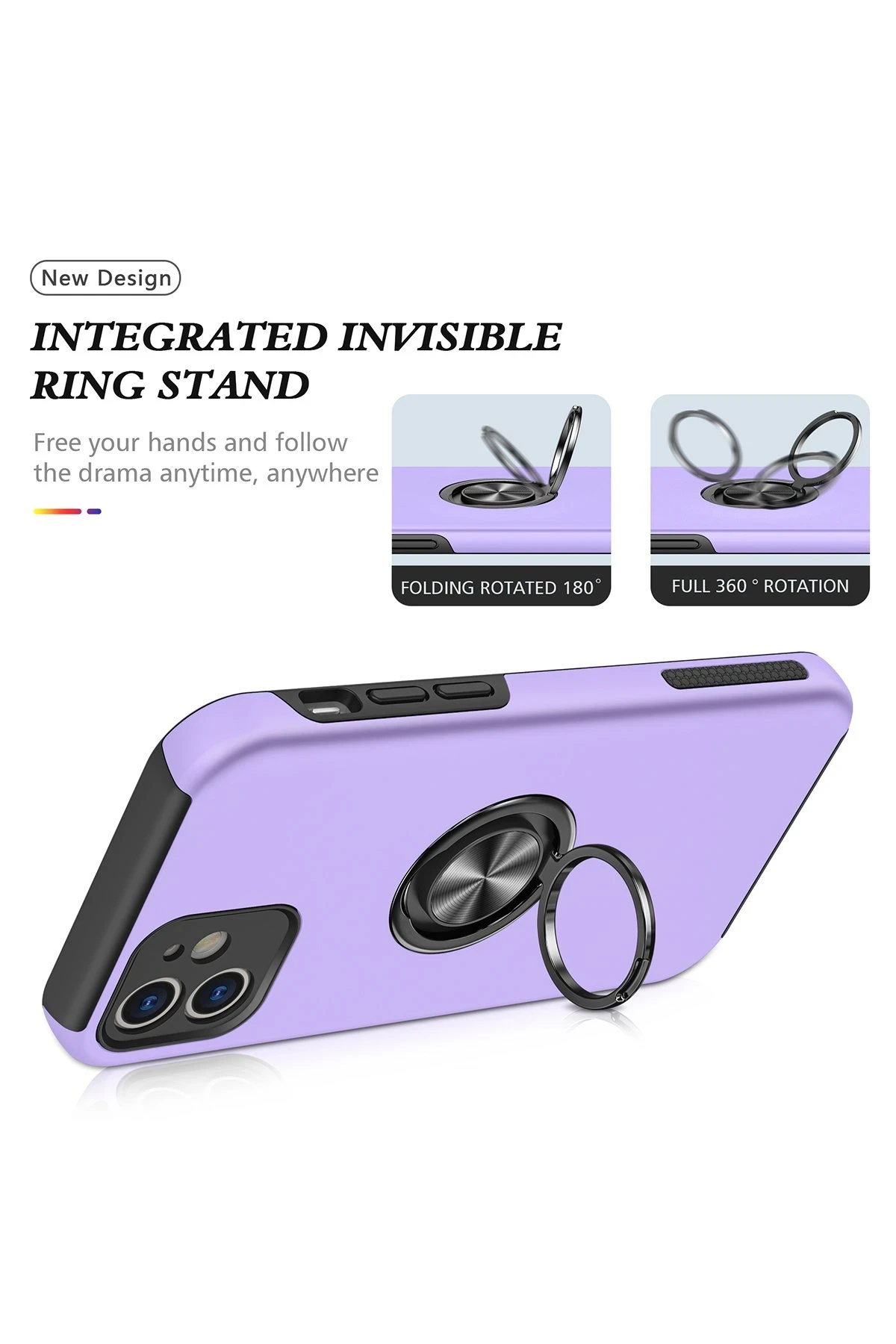 Newface iPhone 12 Kılıf Elit Yüzüklü Kapak – Mor