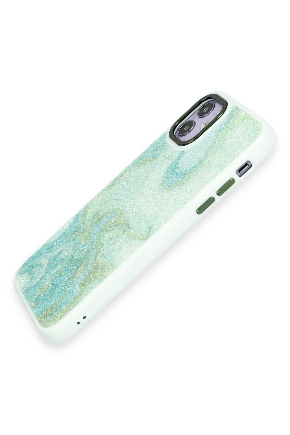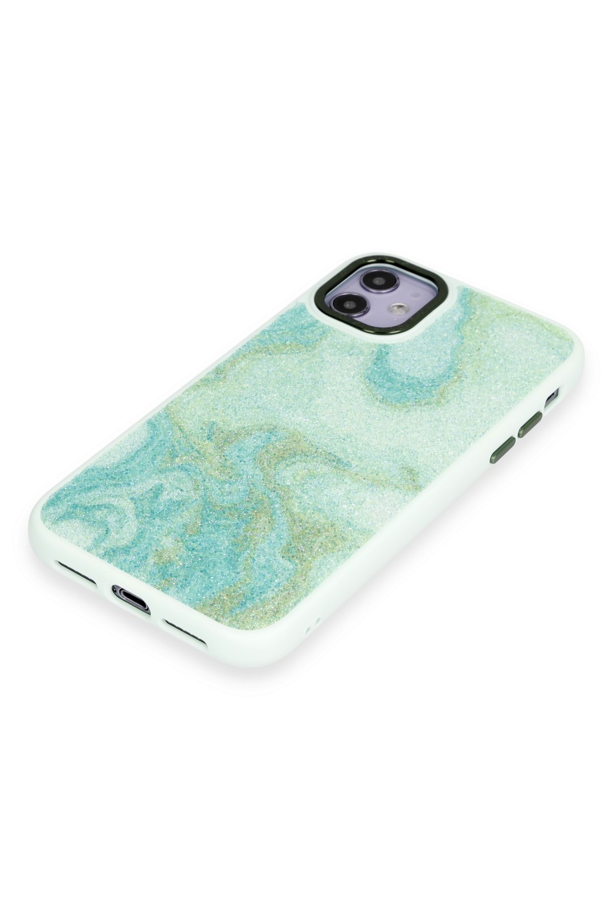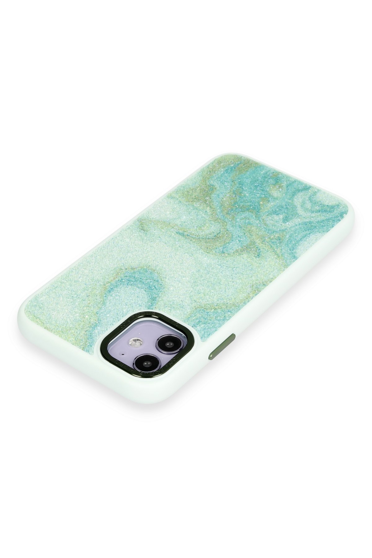 Newface iPhone 12 Kılıf Moda Simli Kapak – Yeşil