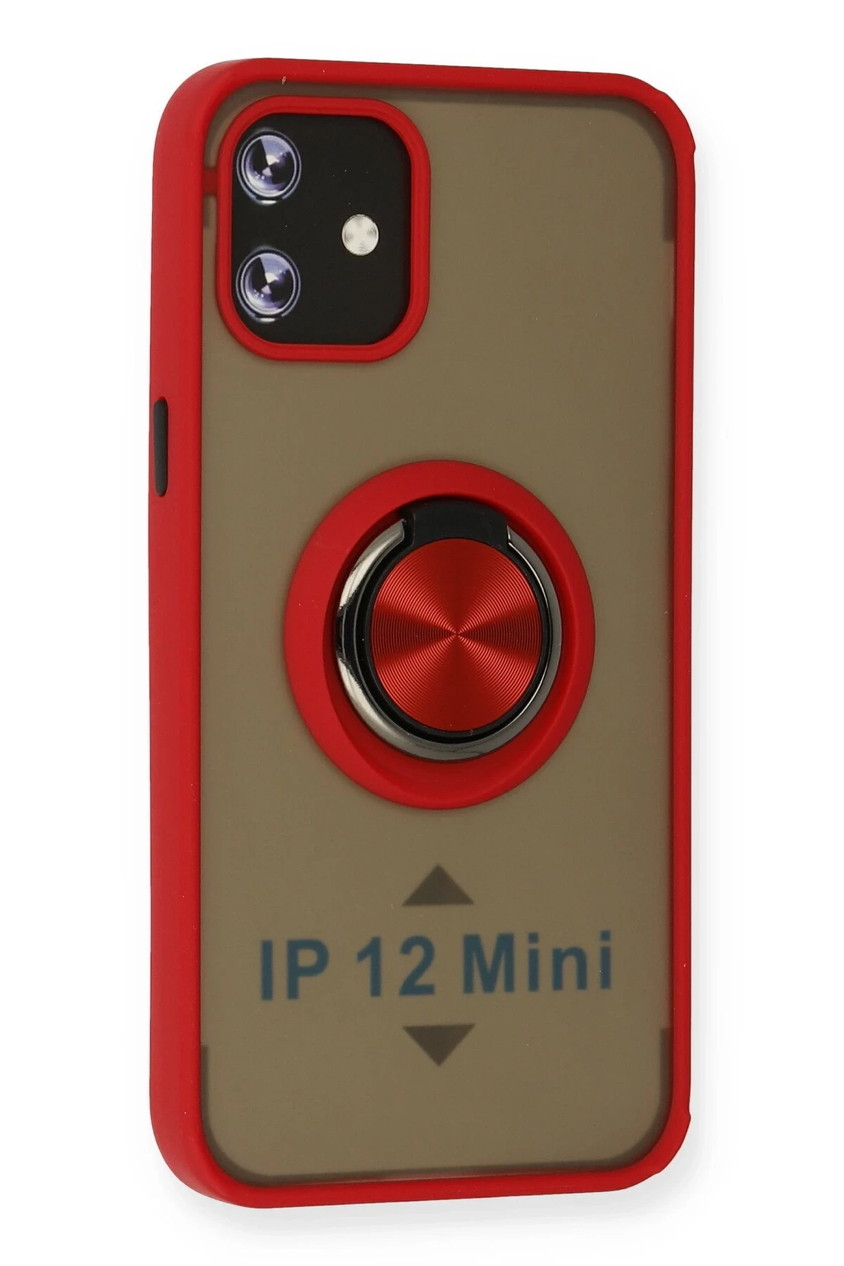 Newface iPhone 12 Mini Kılıf Montreal Yüzüklü Silikon Kapak – Kırmızı
