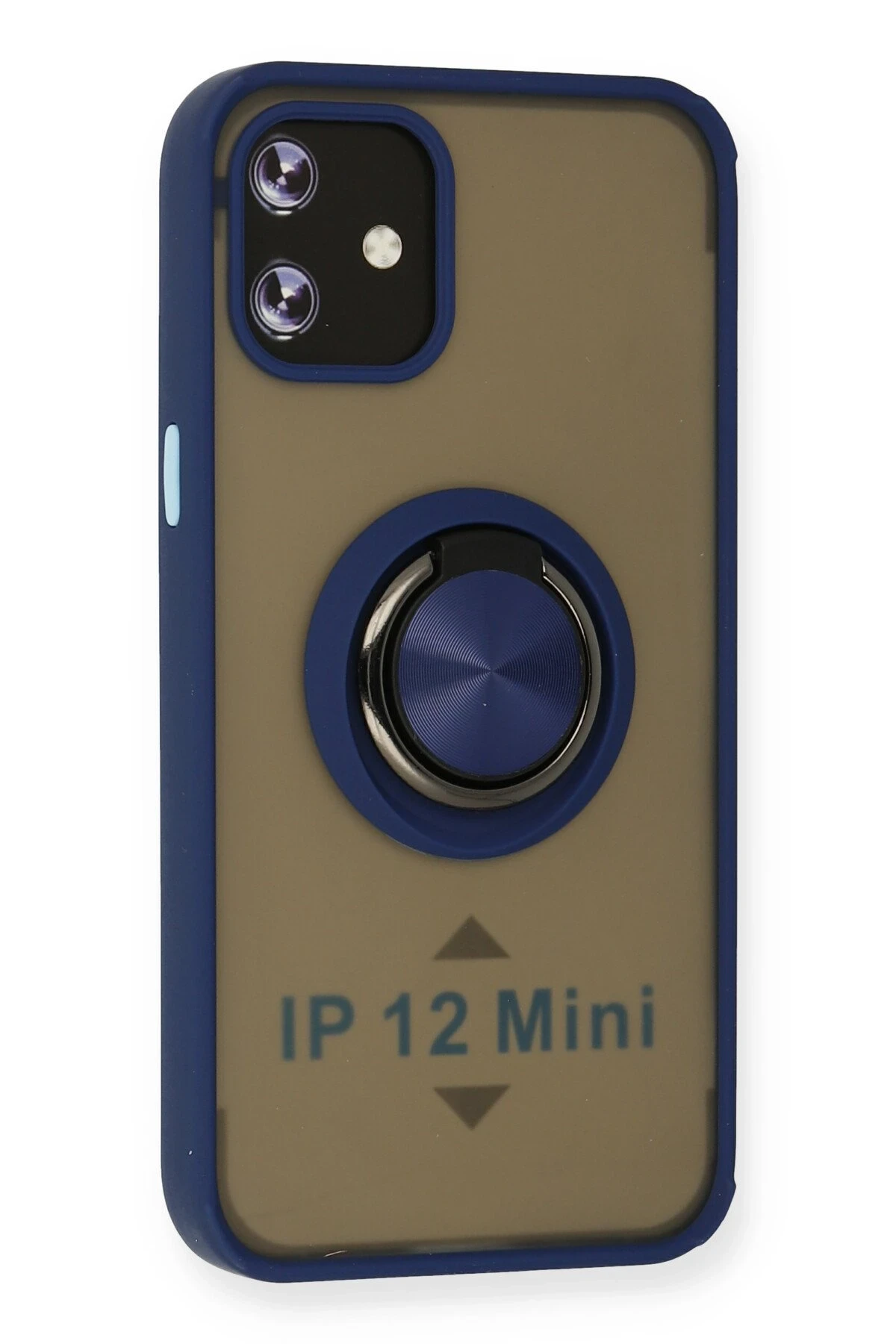 Newface iPhone 12 Mini Kılıf Montreal Yüzüklü Silikon Kapak – Lacivert