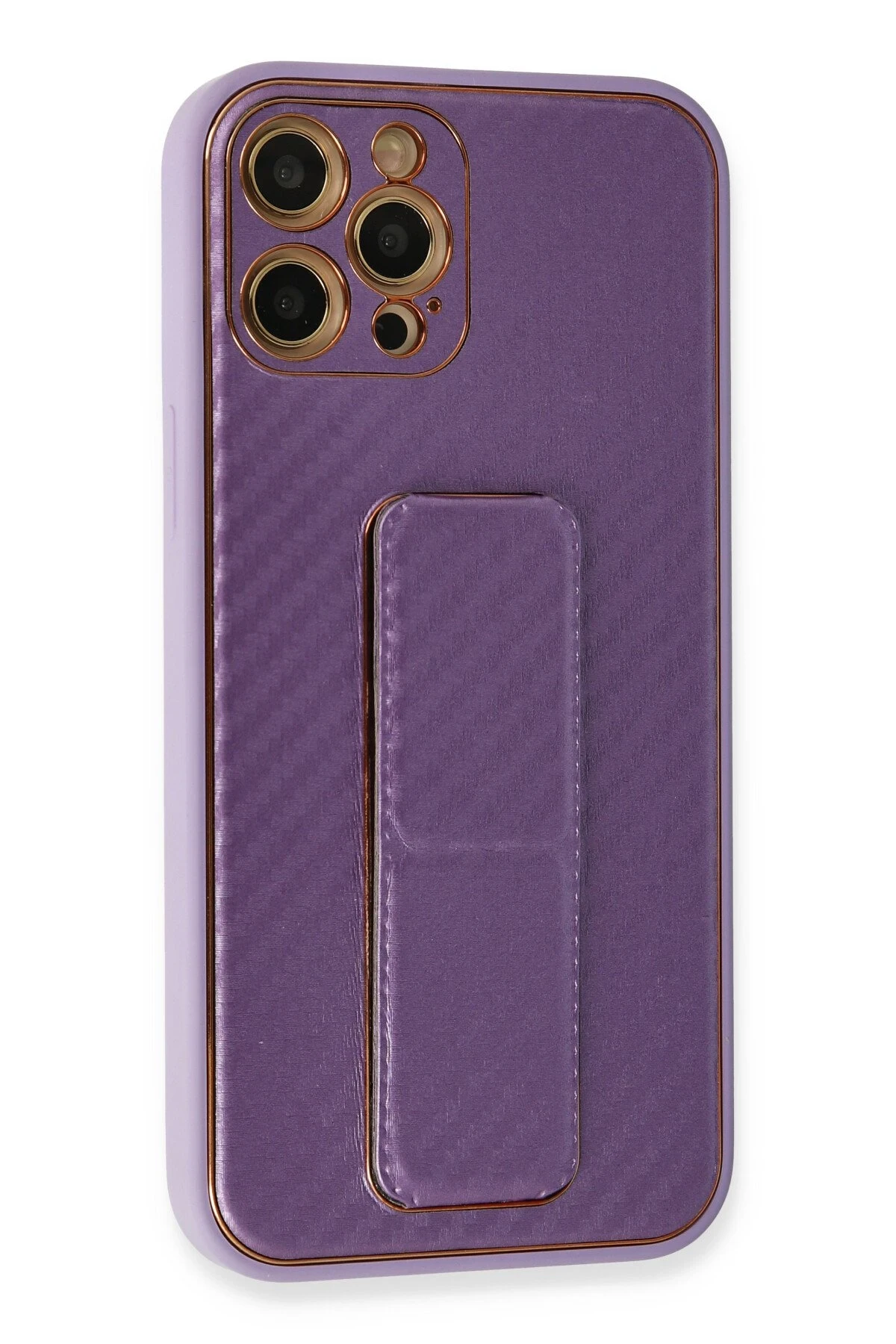 Newface iPhone 12 Pro Kılıf Coco Karbon Standlı Kapak – Mor