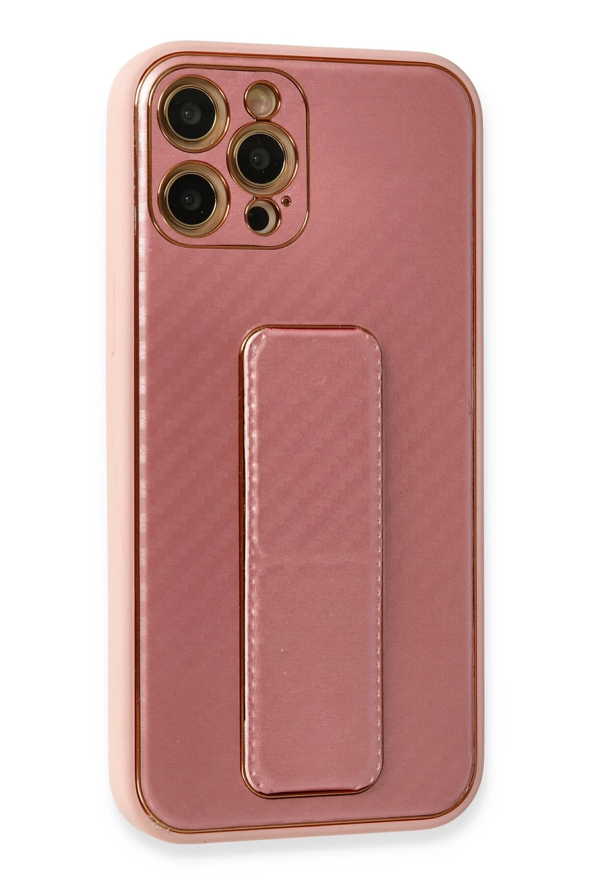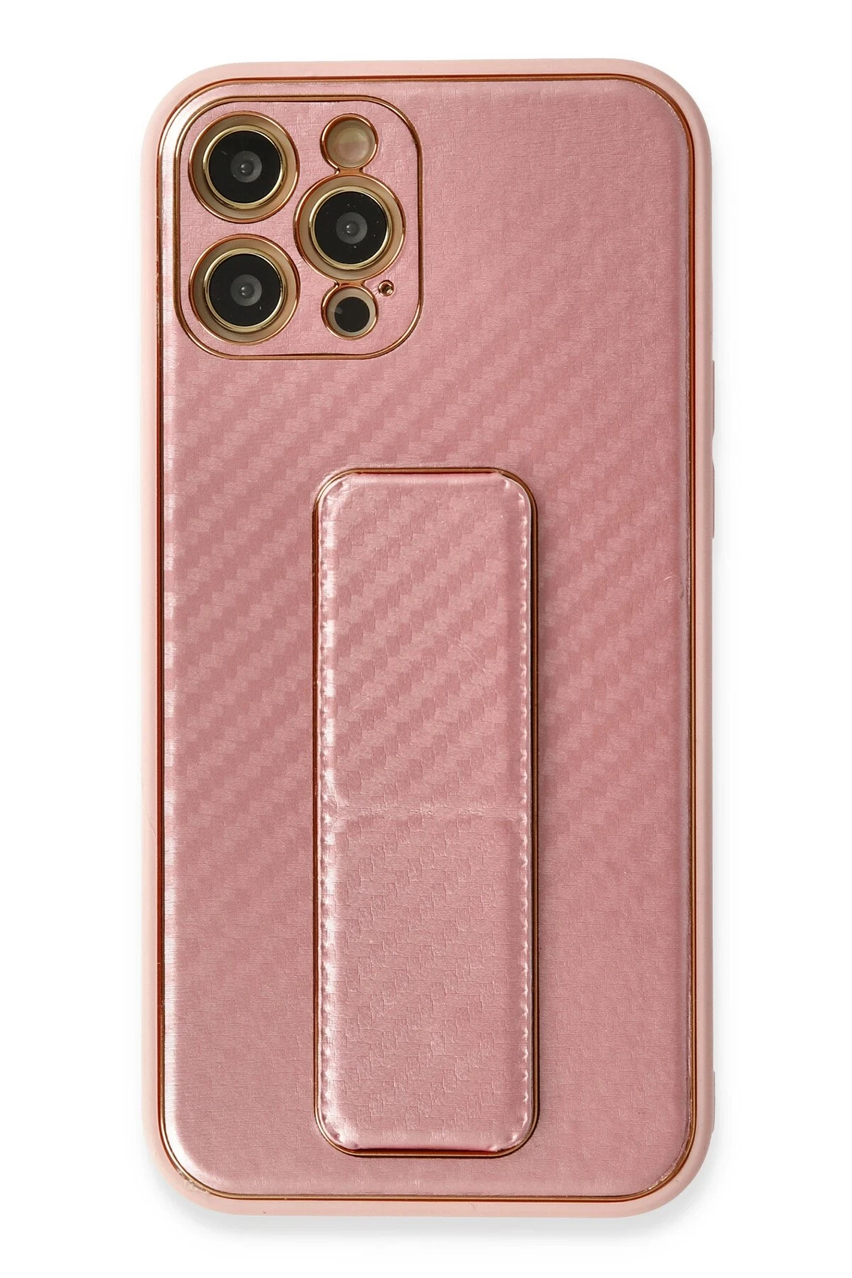 Newface iPhone 12 Pro Kılıf Coco Karbon Standlı Kapak – Pembe