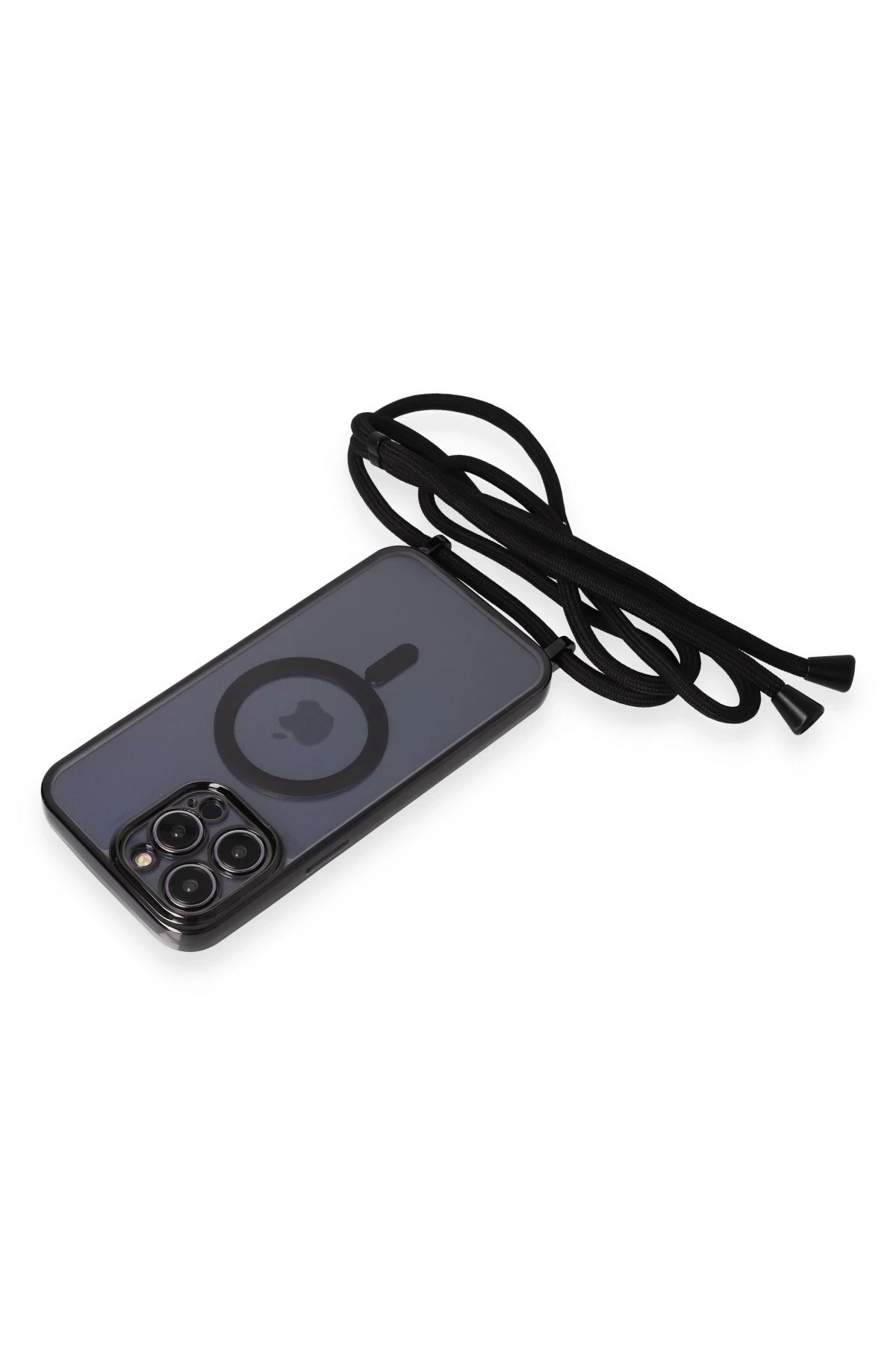 Newface iPhone 12 Pro Kılıf Divo Lazer Askılı Magsafe Kapak – Siyah