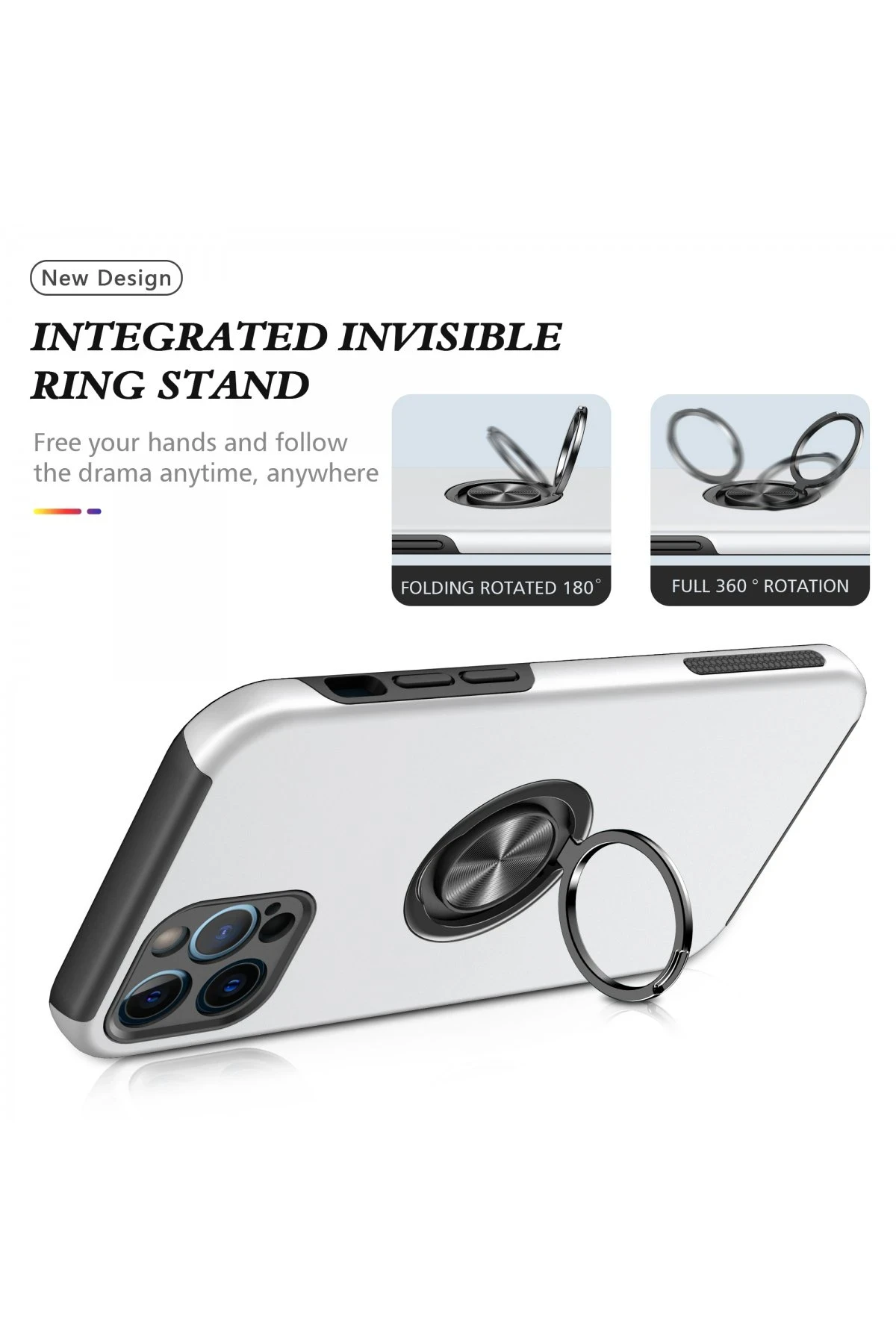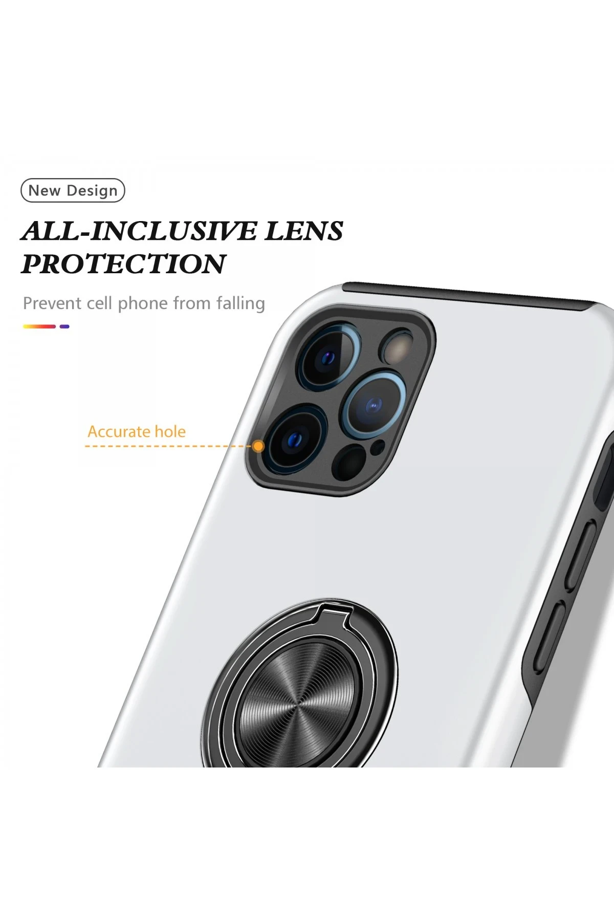 Newface iPhone 12 Pro Kılıf Elit Yüzüklü Kapak – Gümüş
