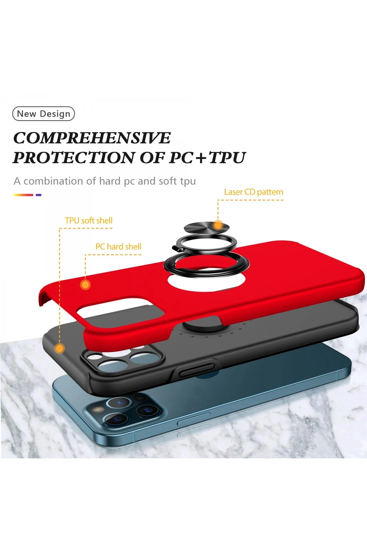 Newface iPhone 12 Pro Kılıf Elit Yüzüklü Kapak – Kırmızı