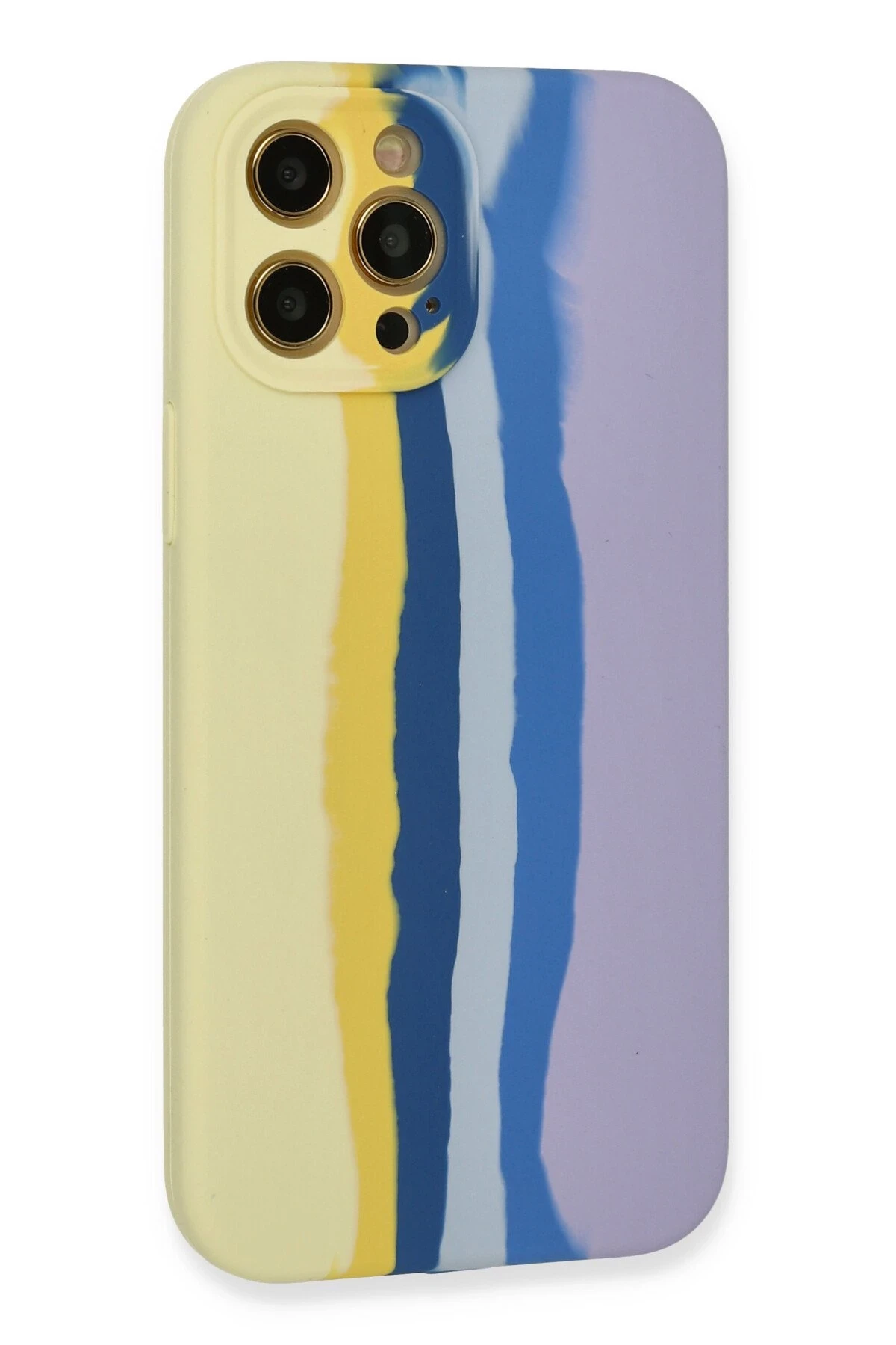 Newface iPhone 12 Pro Max Kılıf Ebruli Lansman Silikon – Sarı-Lila