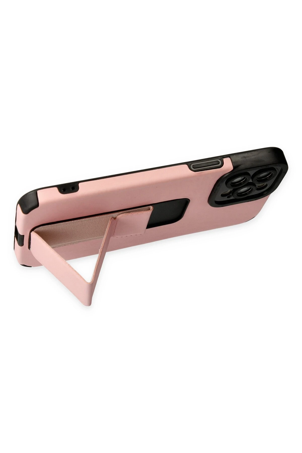 Newface iPhone 12 Pro Max Kılıf Mega Standlı Silikon – Pudra