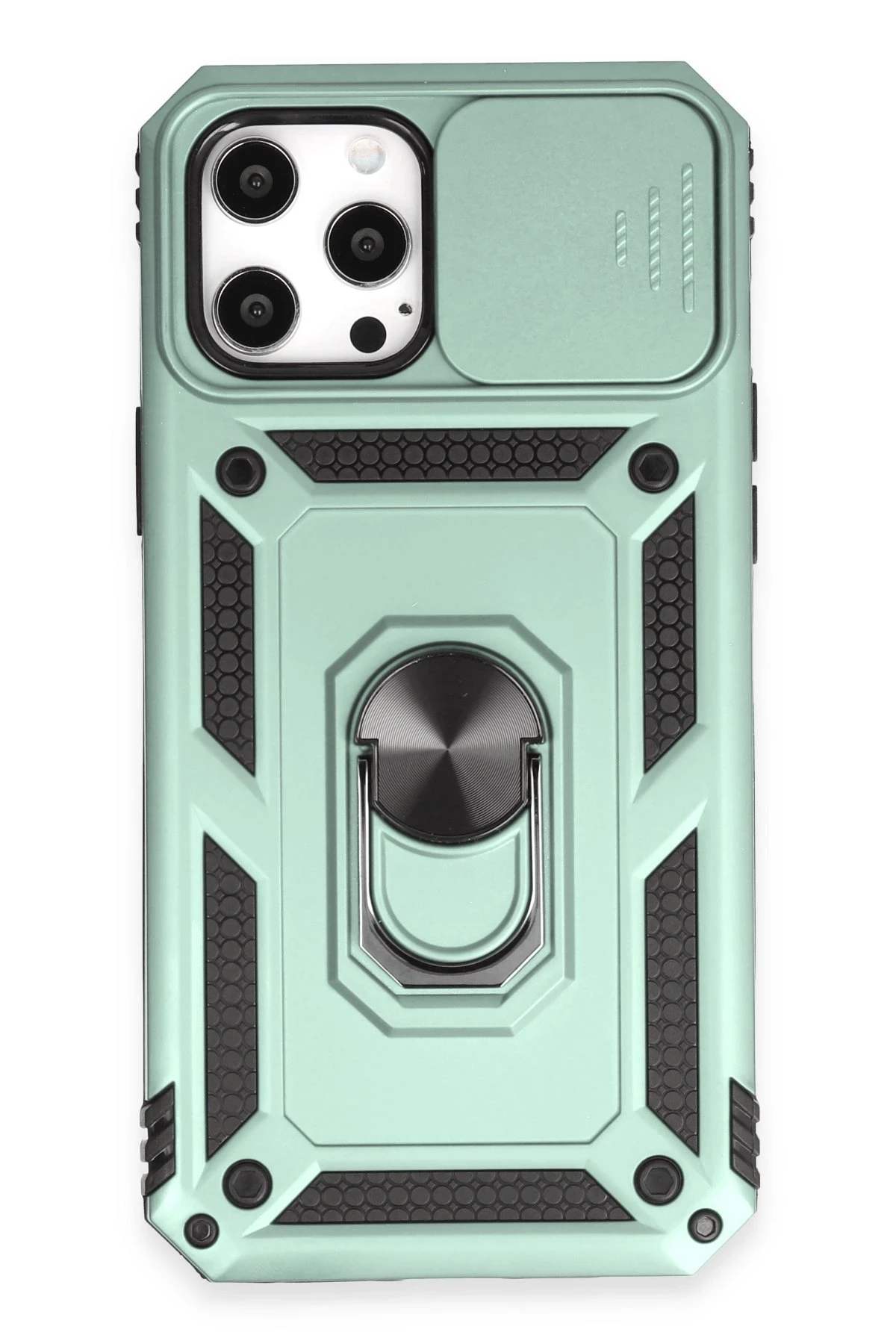 Newface iPhone 12 Pro Max Kılıf Pars Lens Yüzüklü Silikon – Yeşil