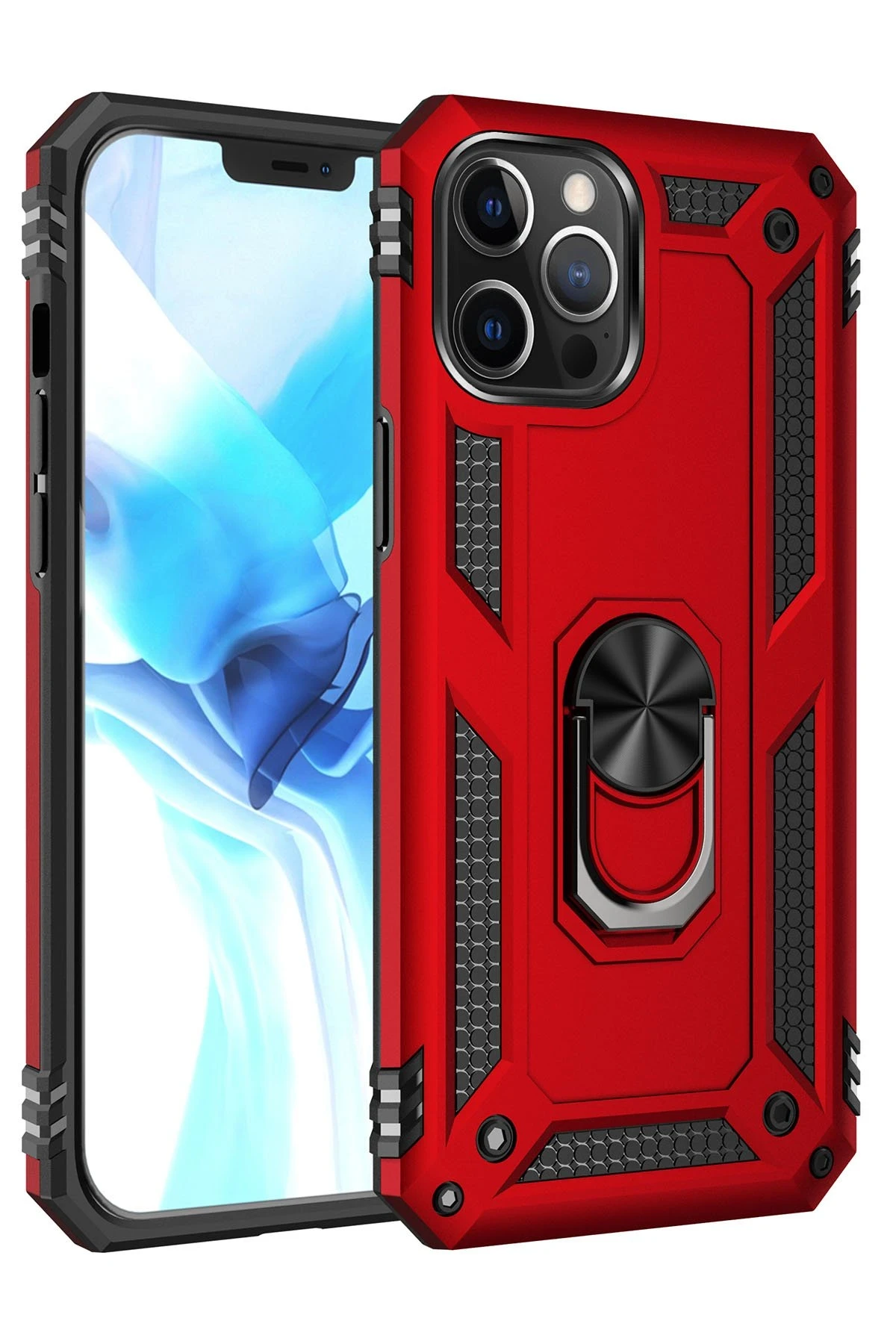 Newface iPhone 12 Pro Max Kılıf Sofya Yüzüklü Silikon Kapak – Kırmızı