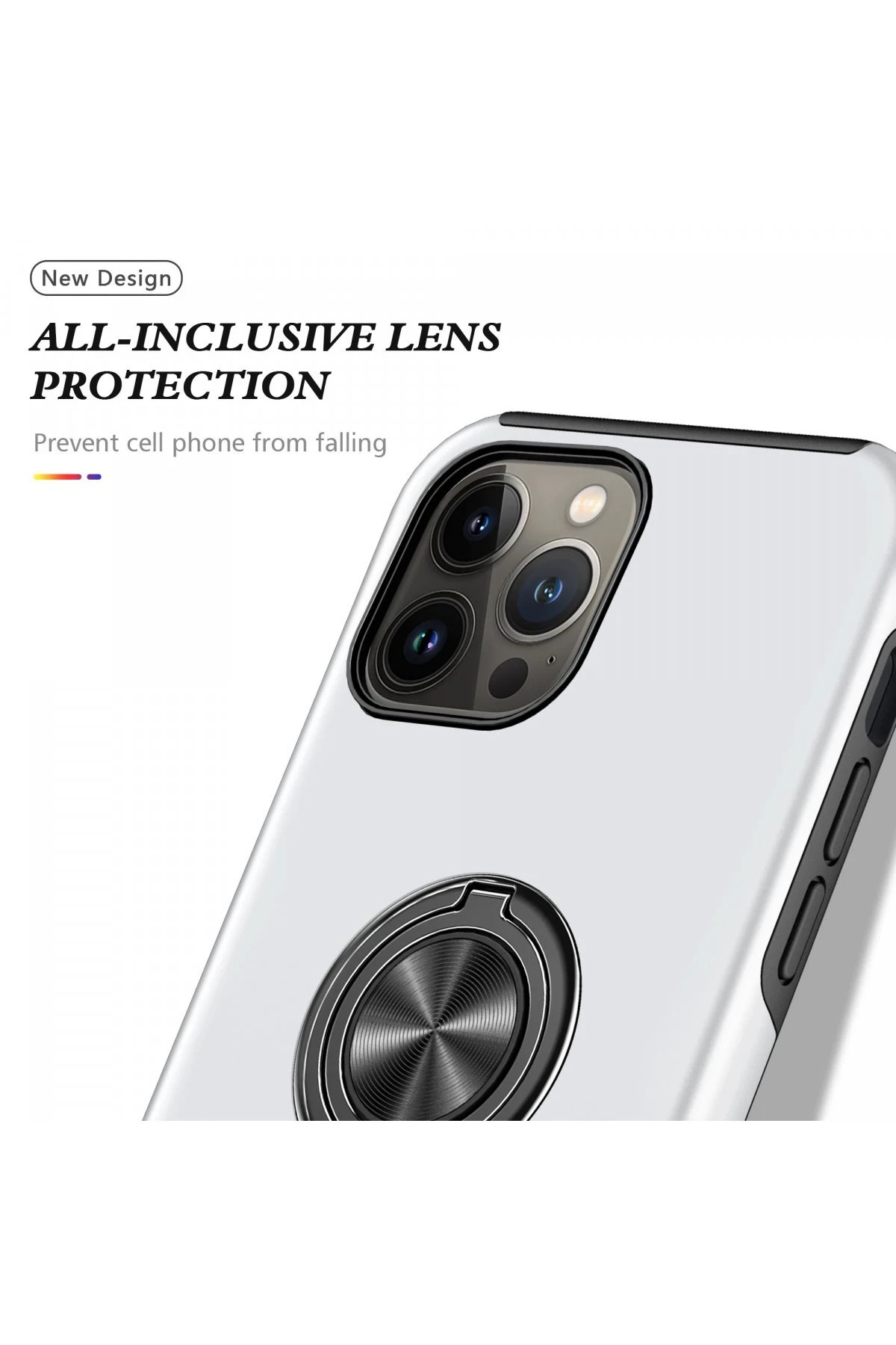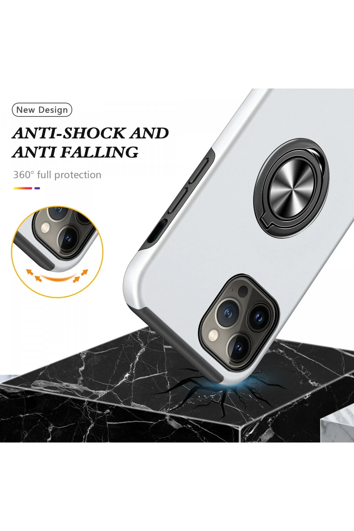 Newface iPhone 13 Pro Kılıf Elit Yüzüklü Kapak – Gümüş