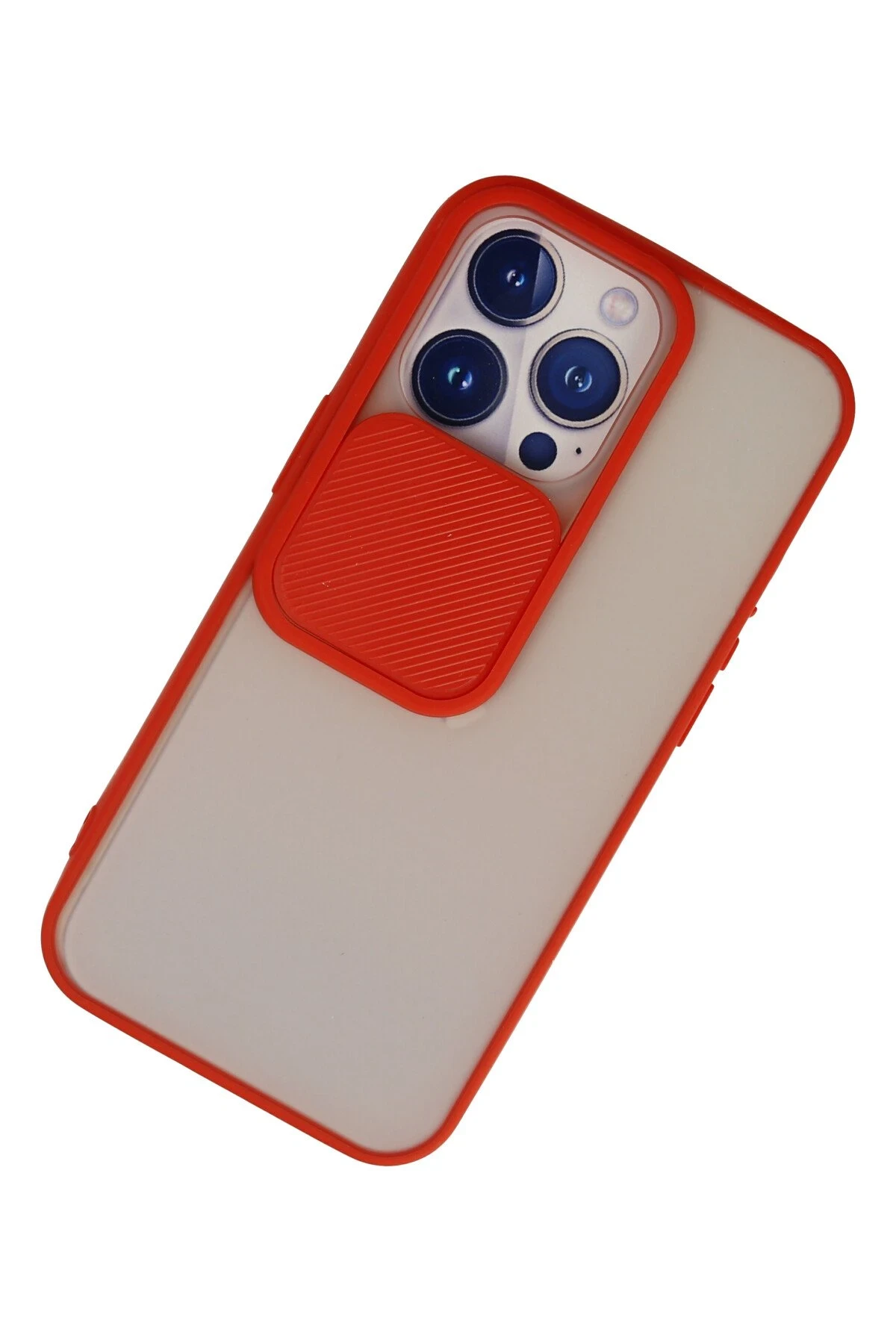 Newface iPhone 13 Pro Kılıf Palm Buzlu Kamera Sürgülü Silikon – Kırmızı