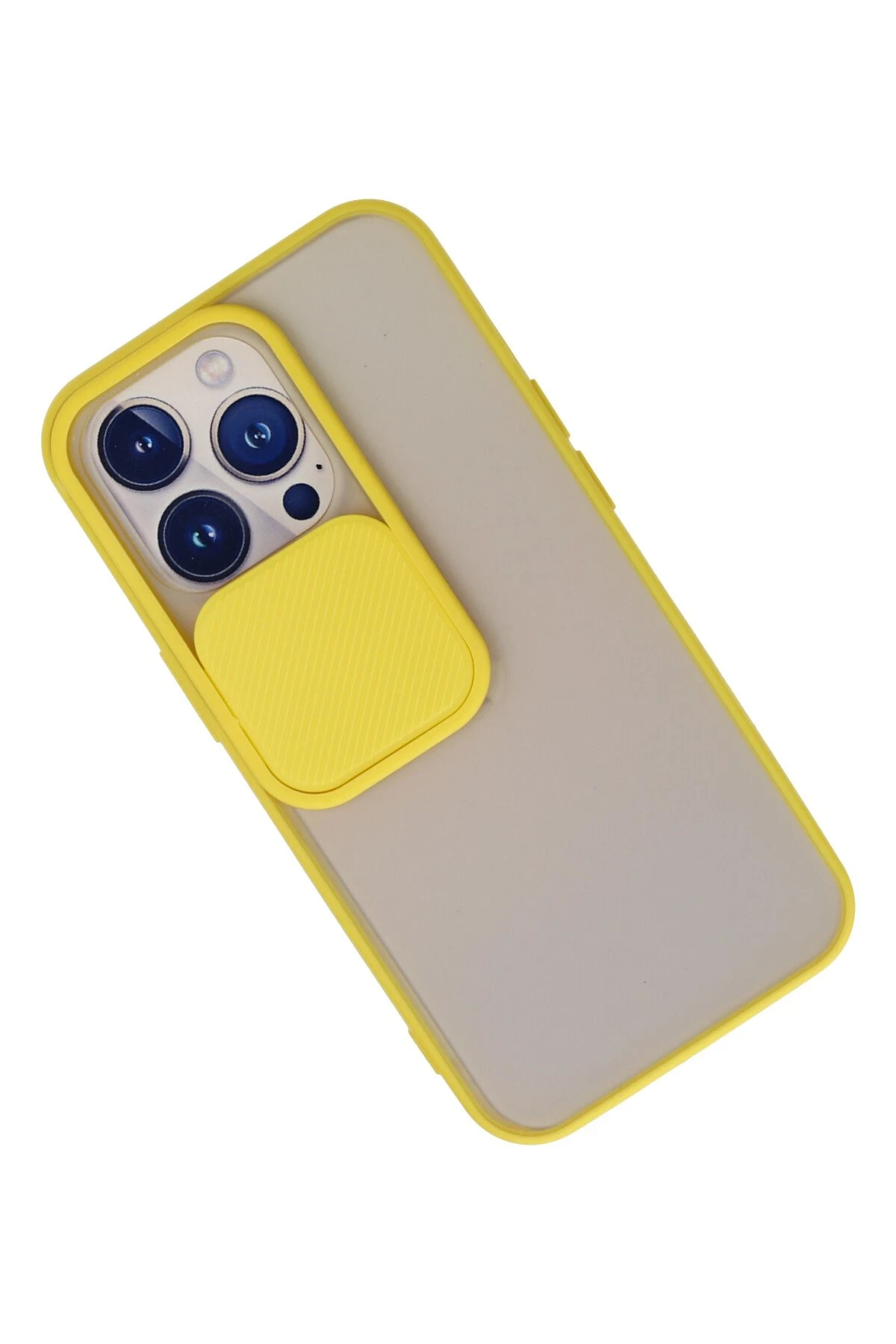 Newface iPhone 13 Pro Kılıf Palm Buzlu Kamera Sürgülü Silikon – Sarı