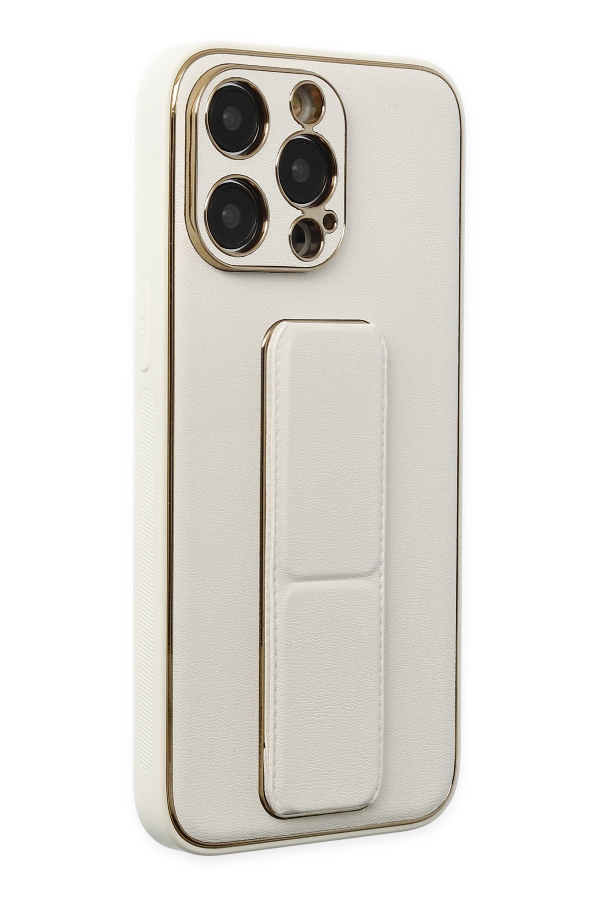 Newface iPhone 13 Pro Max Kılıf Coco Deri Standlı Kapak – Beyaz