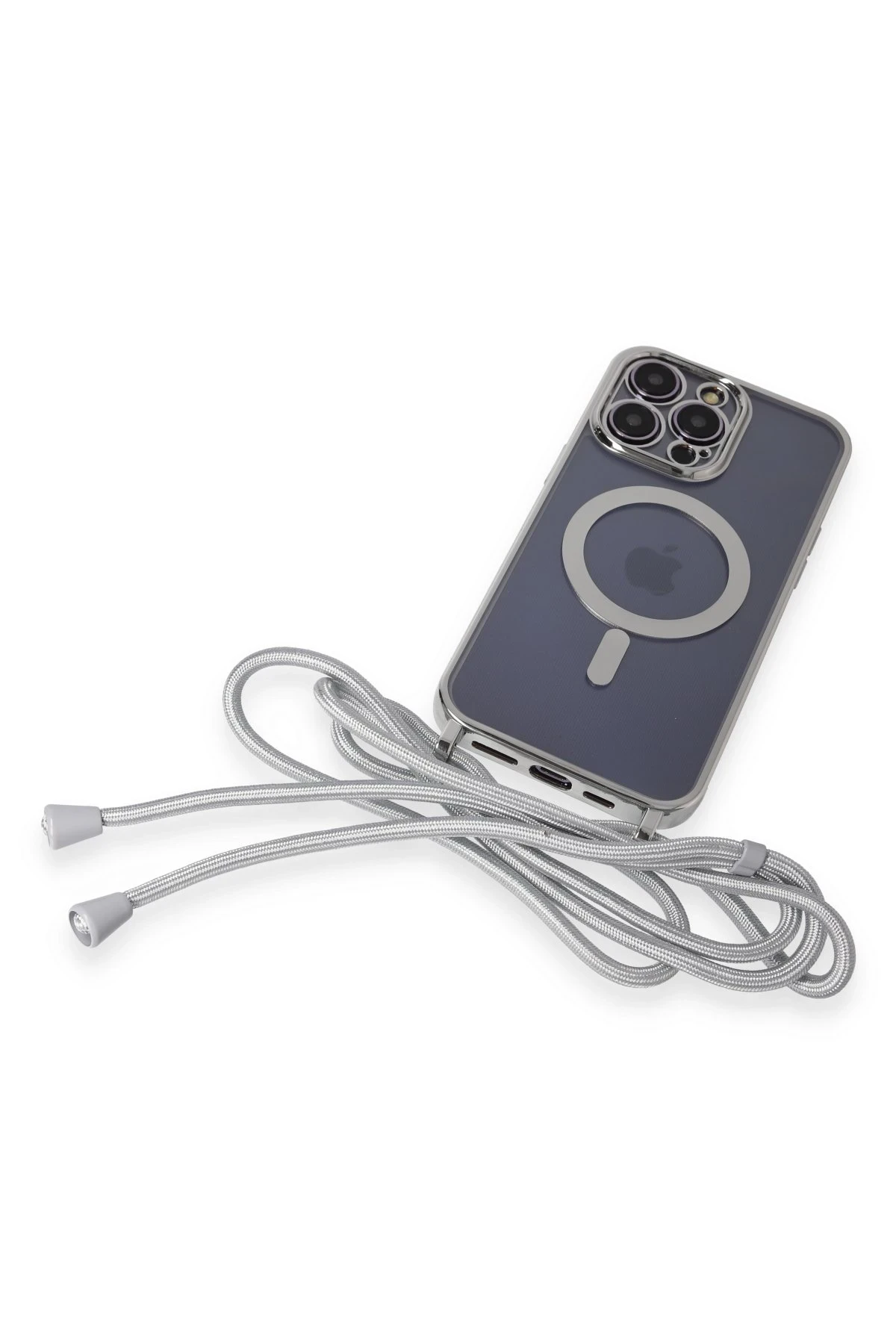 Newface iPhone 13 Pro Max Kılıf Divo Lazer Askılı Magsafe Kapak – Gümüş