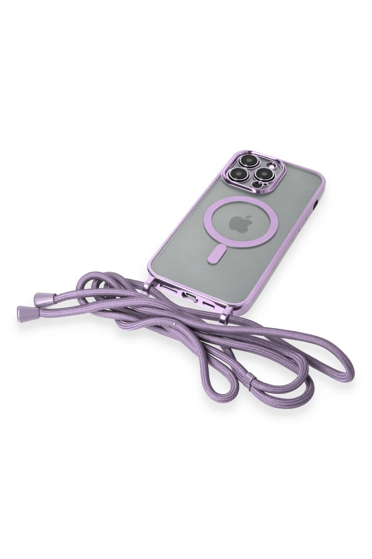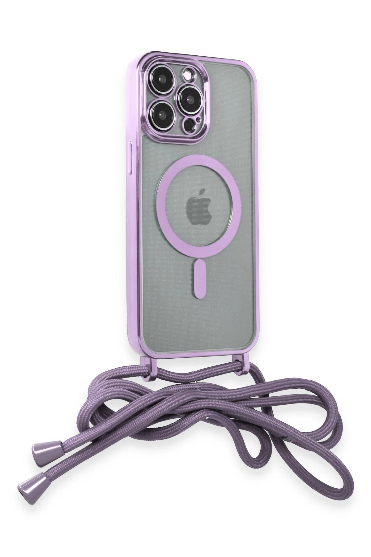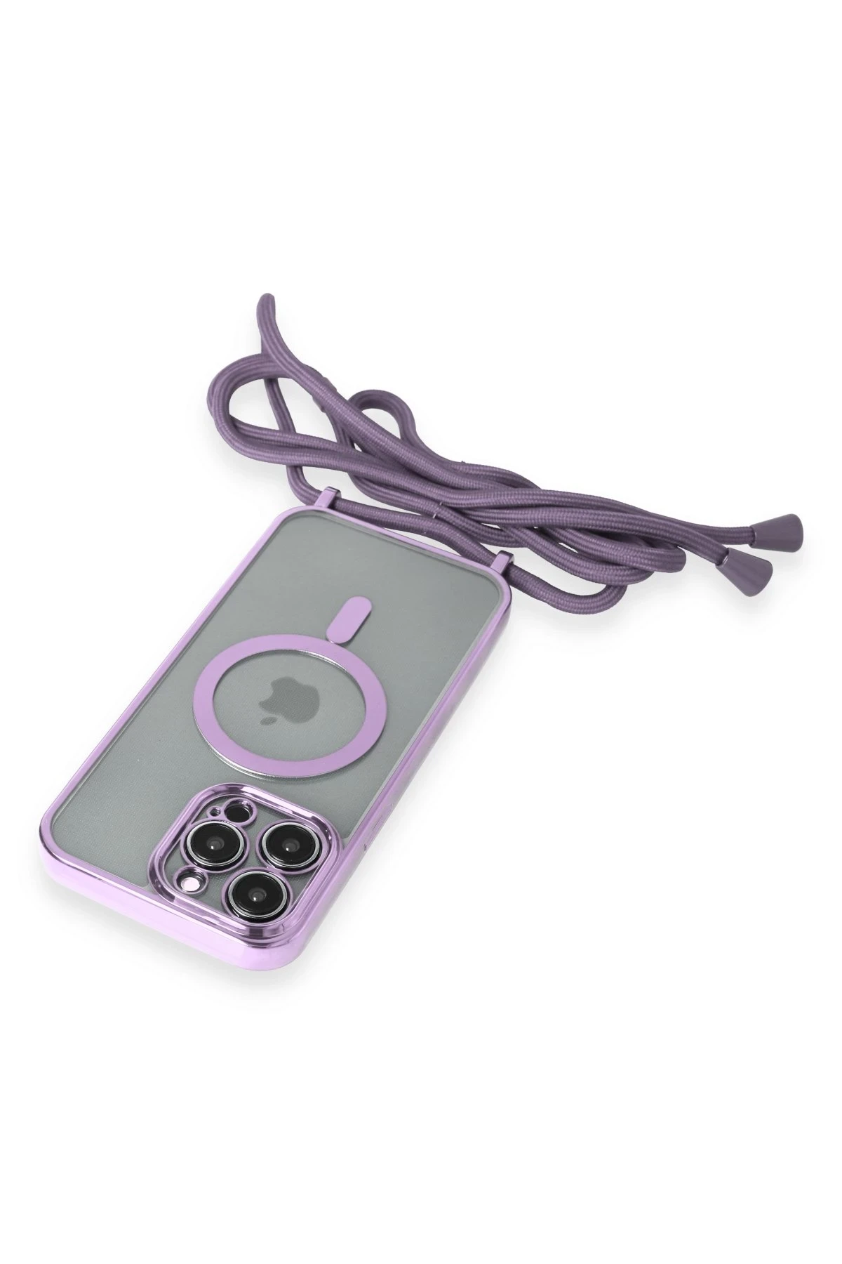 Newface iPhone 13 Pro Max Kılıf Divo Lazer Askılı Magsafe Kapak – Lila