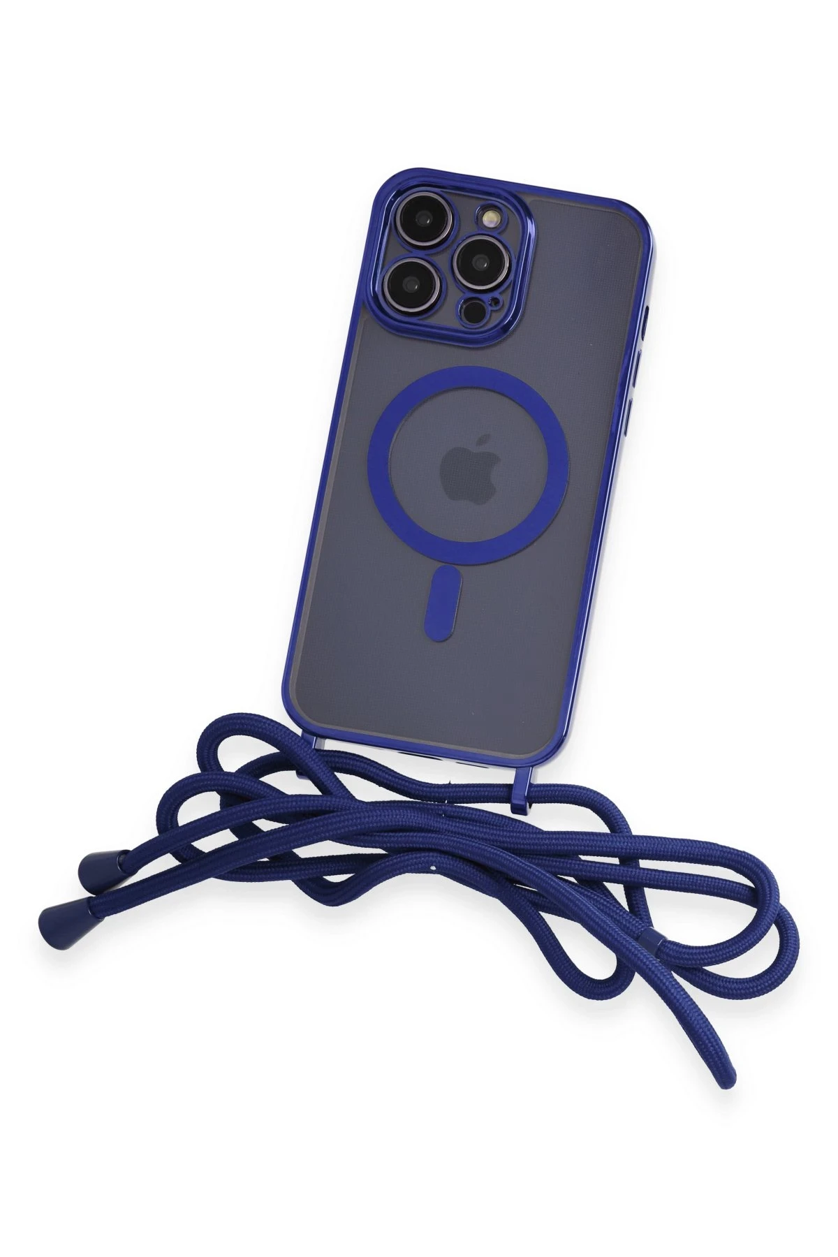 Newface iPhone 14 Pro Max Kılıf Divo Lazer Askılı Magsafe Kapak – Mavi
