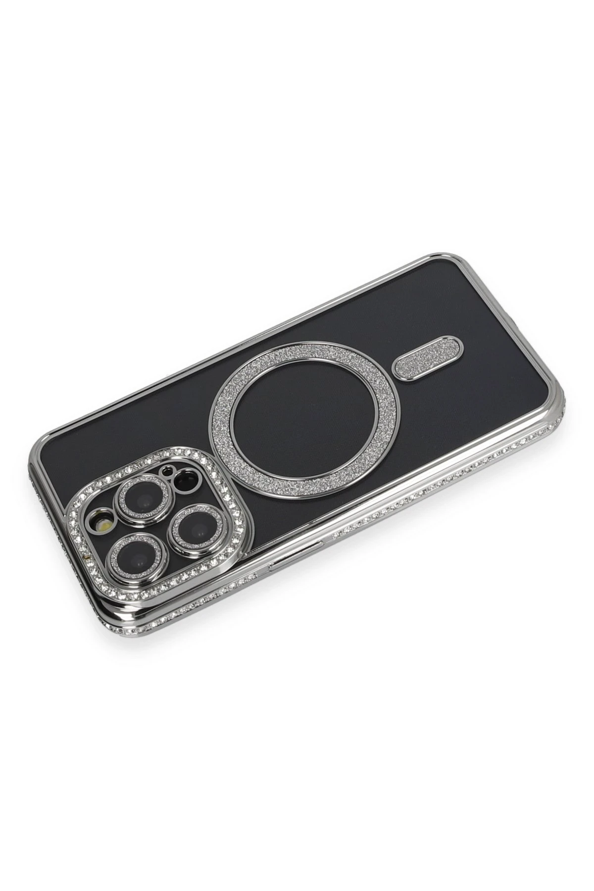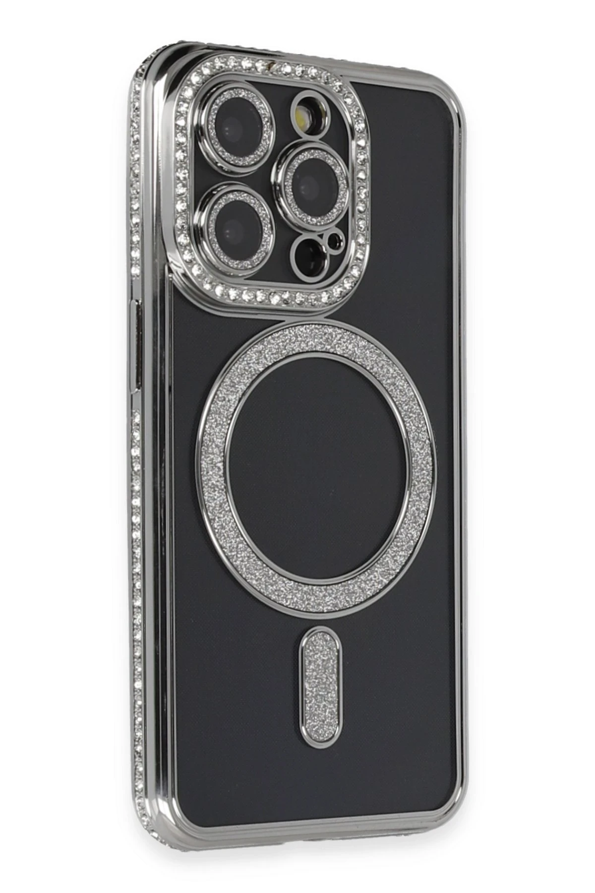 Newface iPhone 14 Pro Max Kılıf Joke Simli Magneticsafe Kılıf – Gri