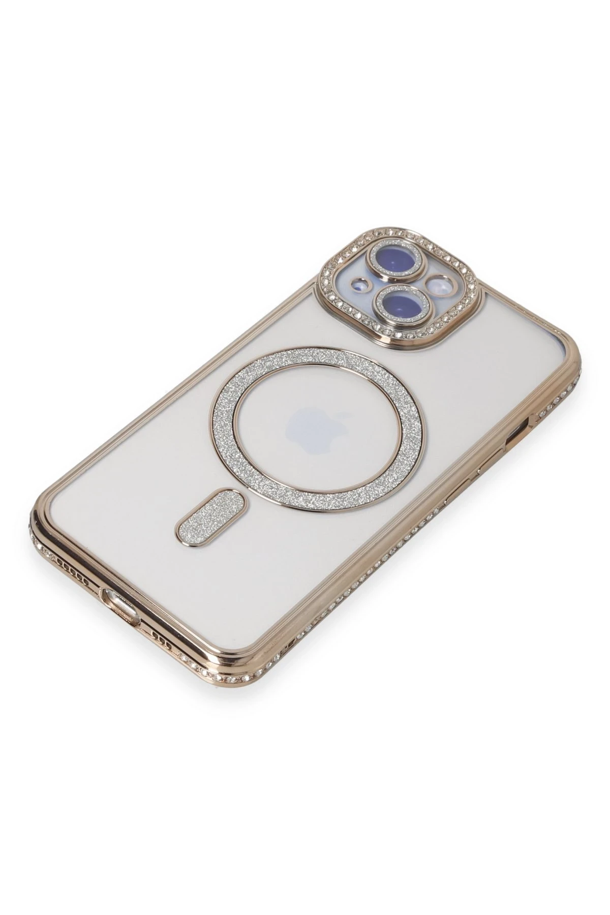 Newface iPhone 15 Kılıf Joke Simli Magneticsafe Kılıf – Gold