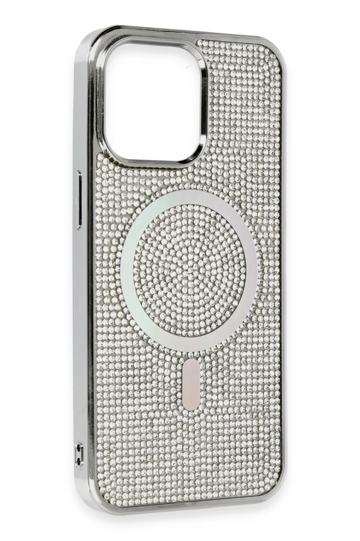 Newface iPhone 15 Pro Kılıf Diamond Magsafe Kapak – Gümüş