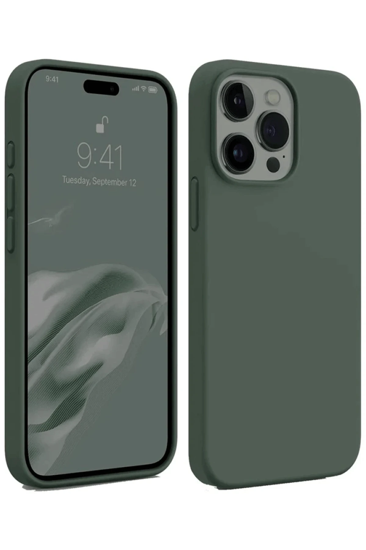 Newface iPhone 15 Pro Max Kılıf First Silikon – Koyu Yeşil