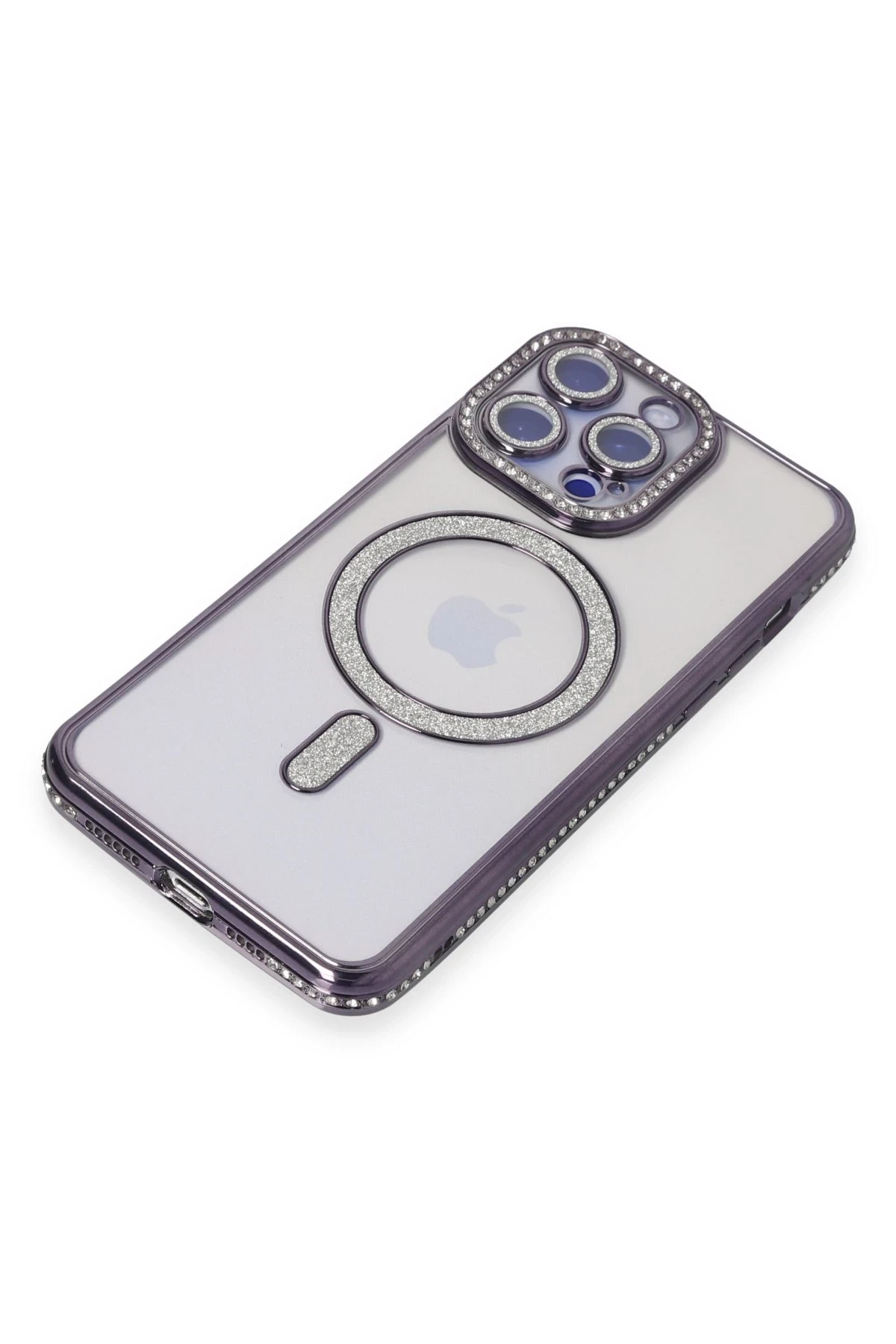 Newface iPhone 15 Pro Max Kılıf Joke Simli Magneticsafe Kılıf – Derin Mor