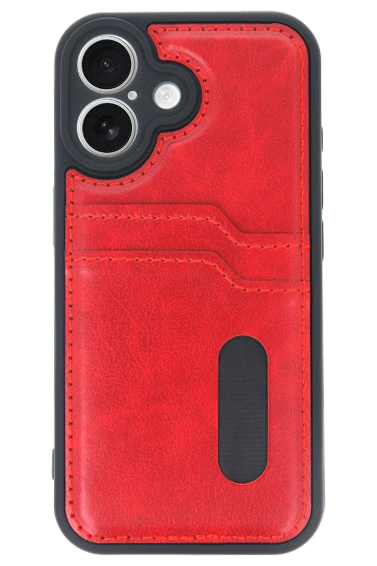 Newface iPhone 16 Kılıf Sara Kartvizitli Deri Kılıf – Kırmızı