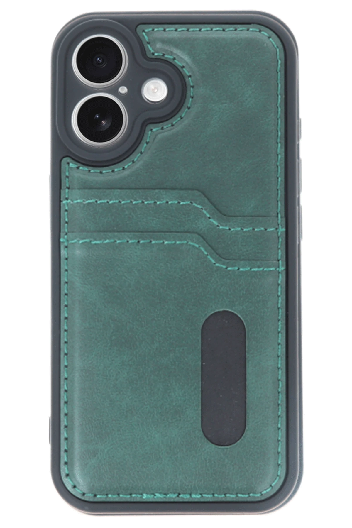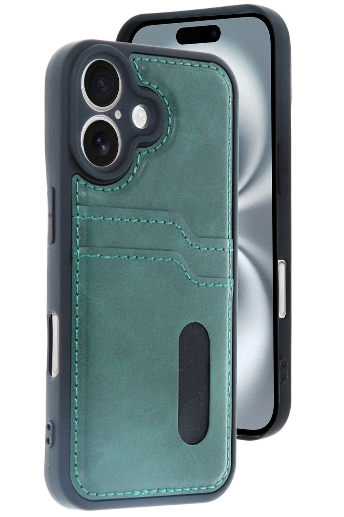 Newface iPhone 16 Kılıf Sara Kartvizitli Deri Kılıf – Koyu Yeşil