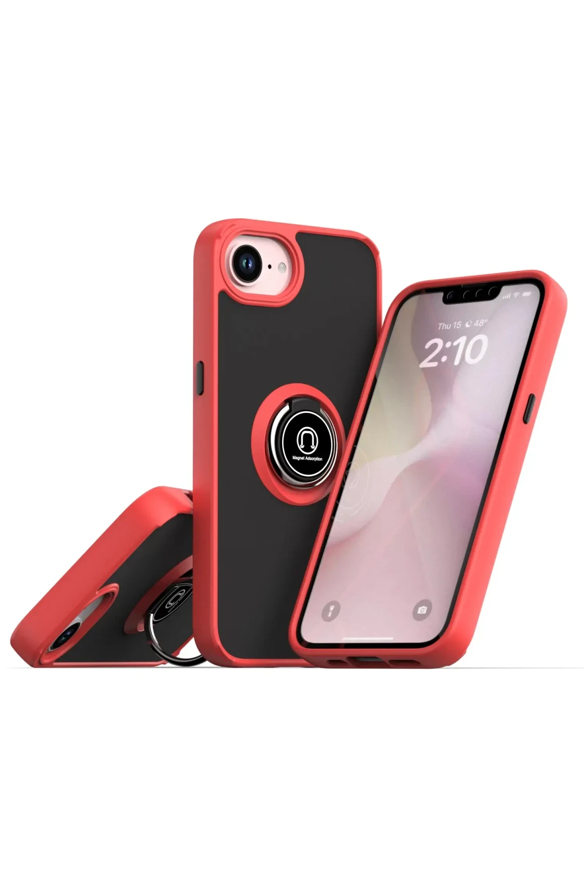 Newface iPhone 16E Kılıf Montreal Yüzüklü Silikon Kapak – Kırmızı