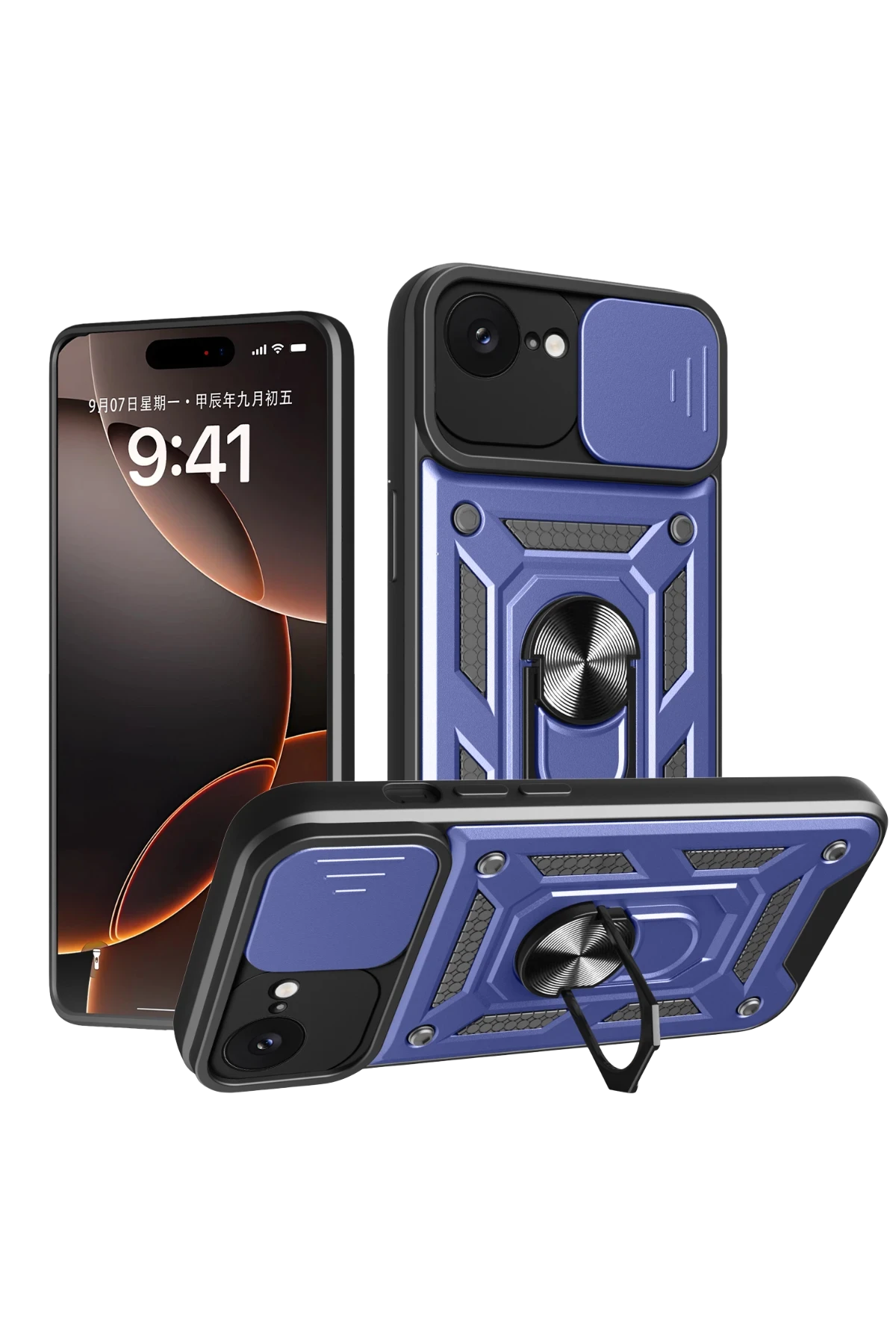 Newface iPhone 16E Kılıf Pars Lens Yüzüklü Silikon – LacivertPars Lens Yüzüklü Silikon