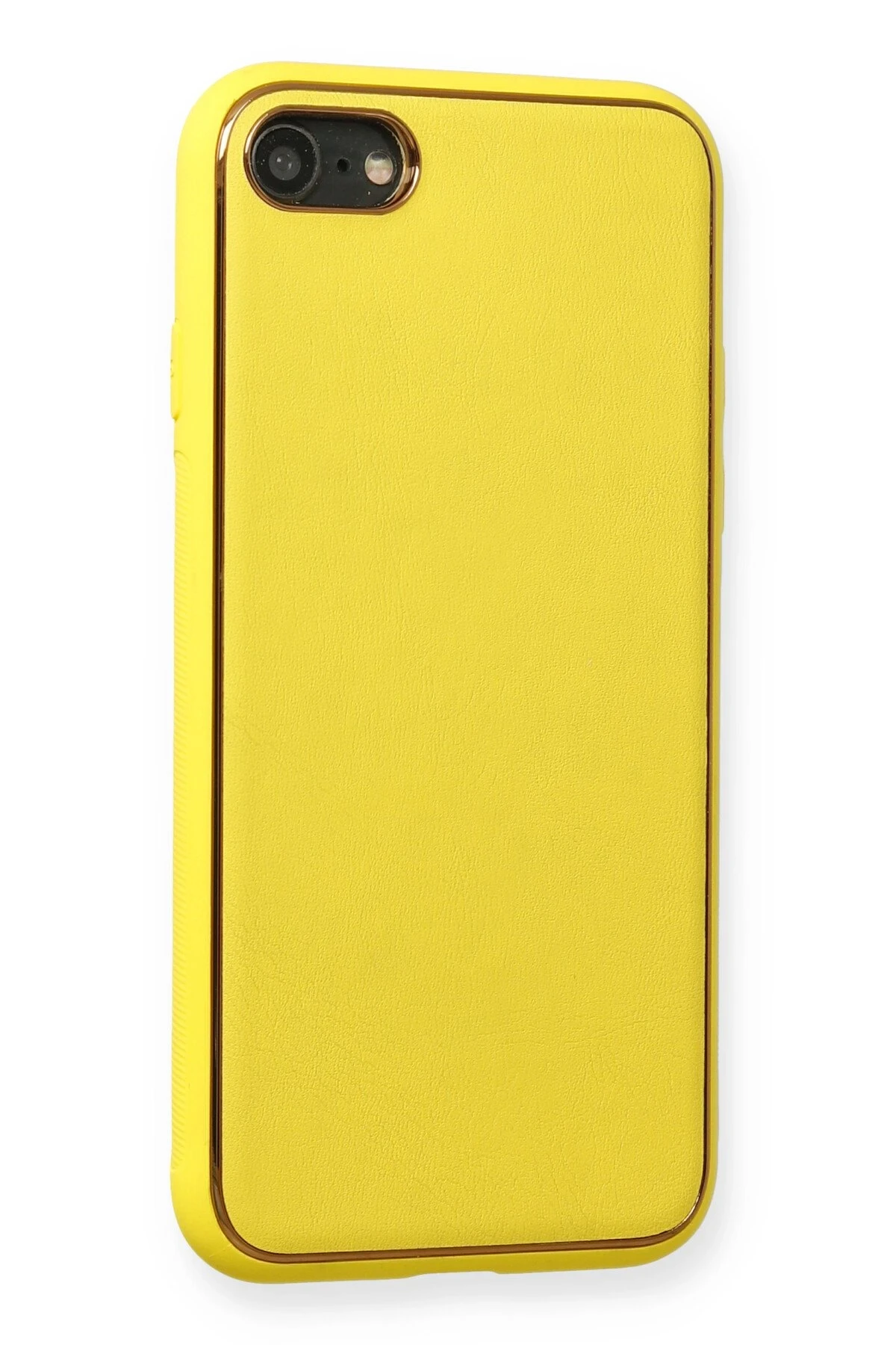 Newface iPhone 7 Kılıf Coco Deri Silikon Kapak – Sarı
