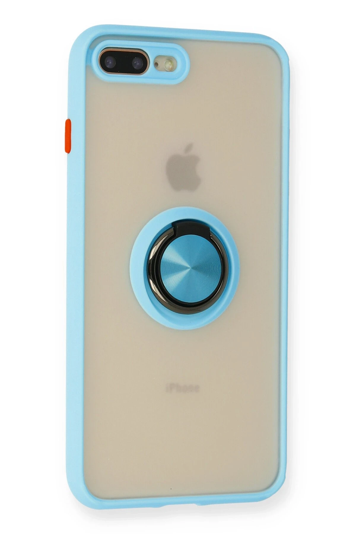 Newface iPhone 7 Plus Kılıf Montreal Yüzüklü Silikon Kapak – Buz Mavi