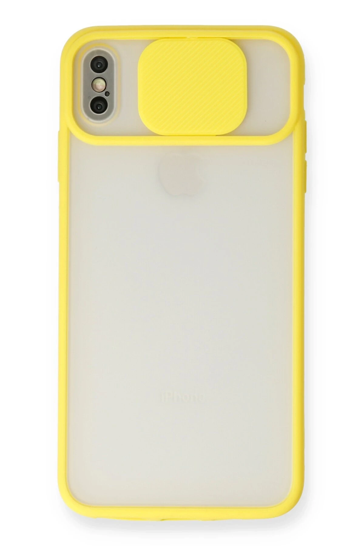 Newface iPhone X Kılıf Palm Buzlu Kamera Sürgülü Silikon – Sarı