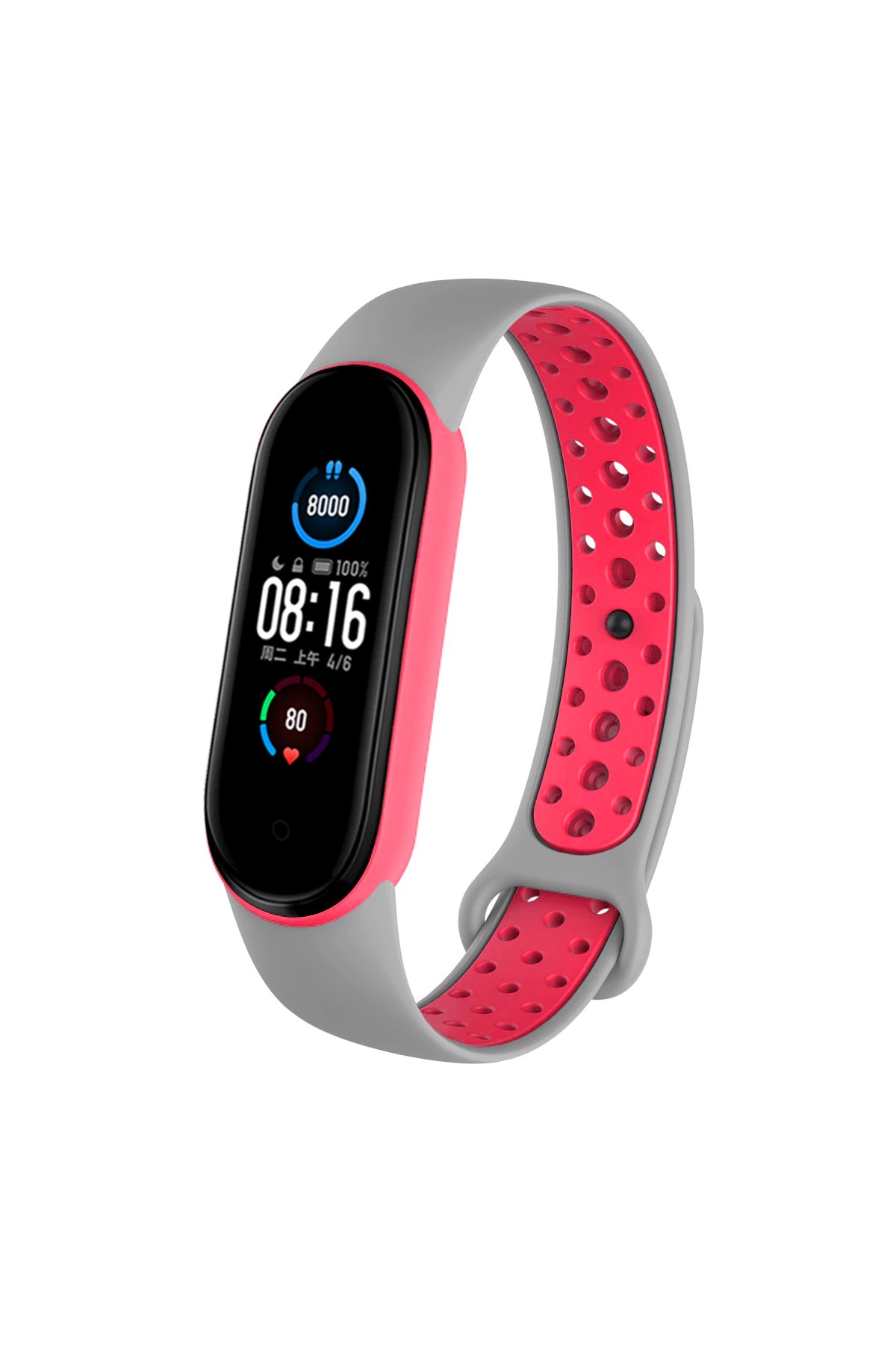 Newface Mi Band 3-4 Spor Delikli Silikon – Gri – Kırmızı