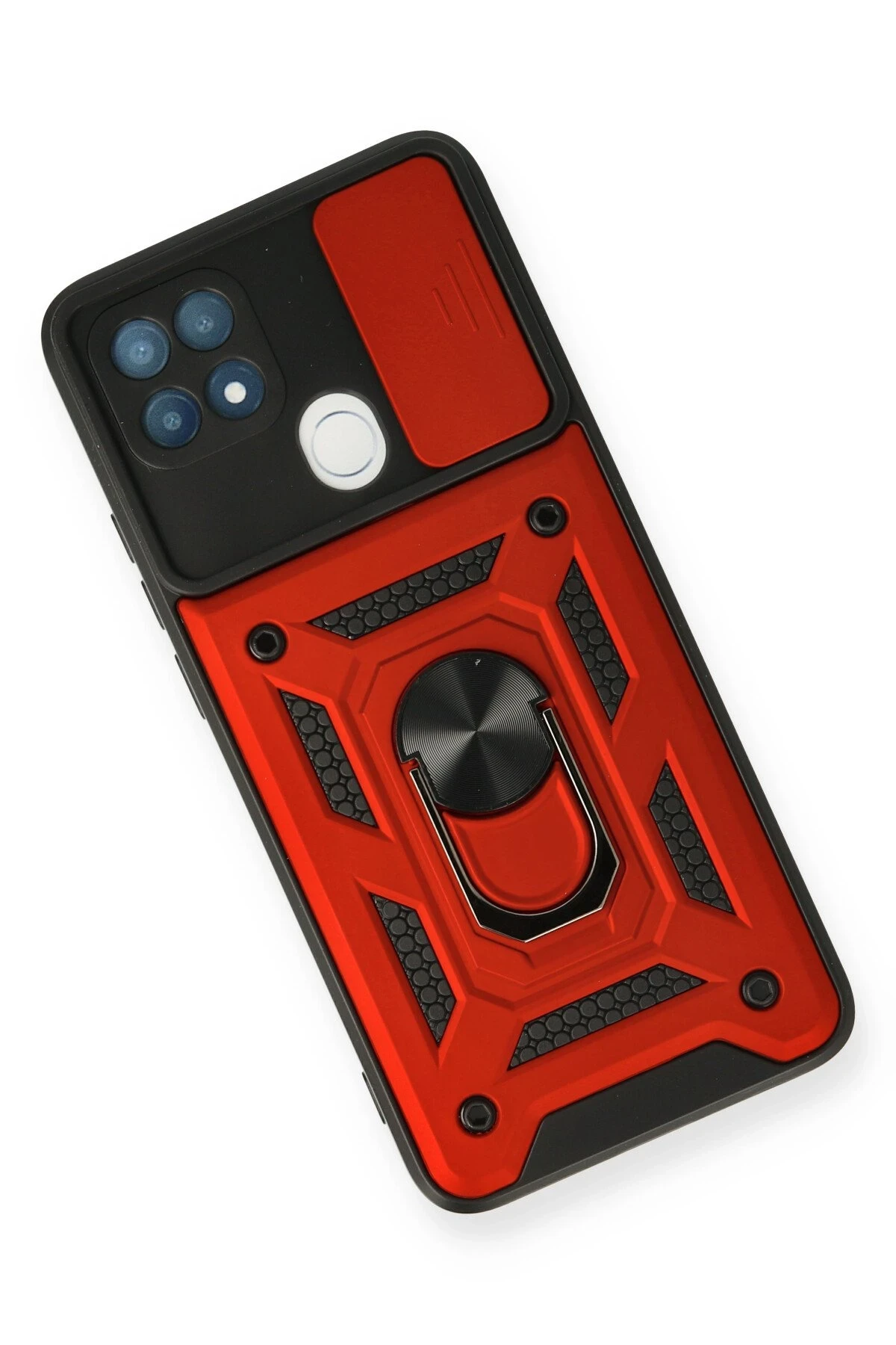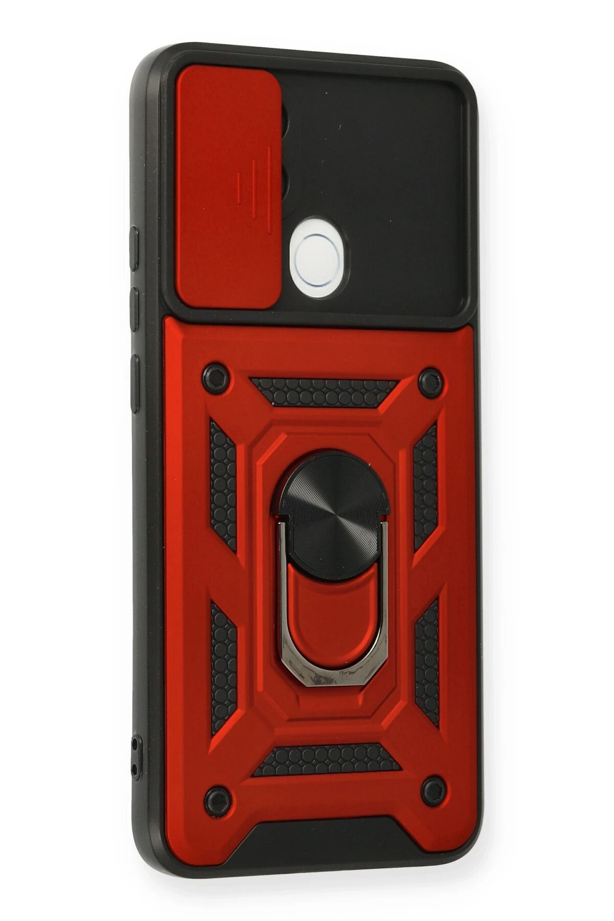Newface Oppo A15 Kılıf Pars Lens Yüzüklü Silikon – Kırmızı