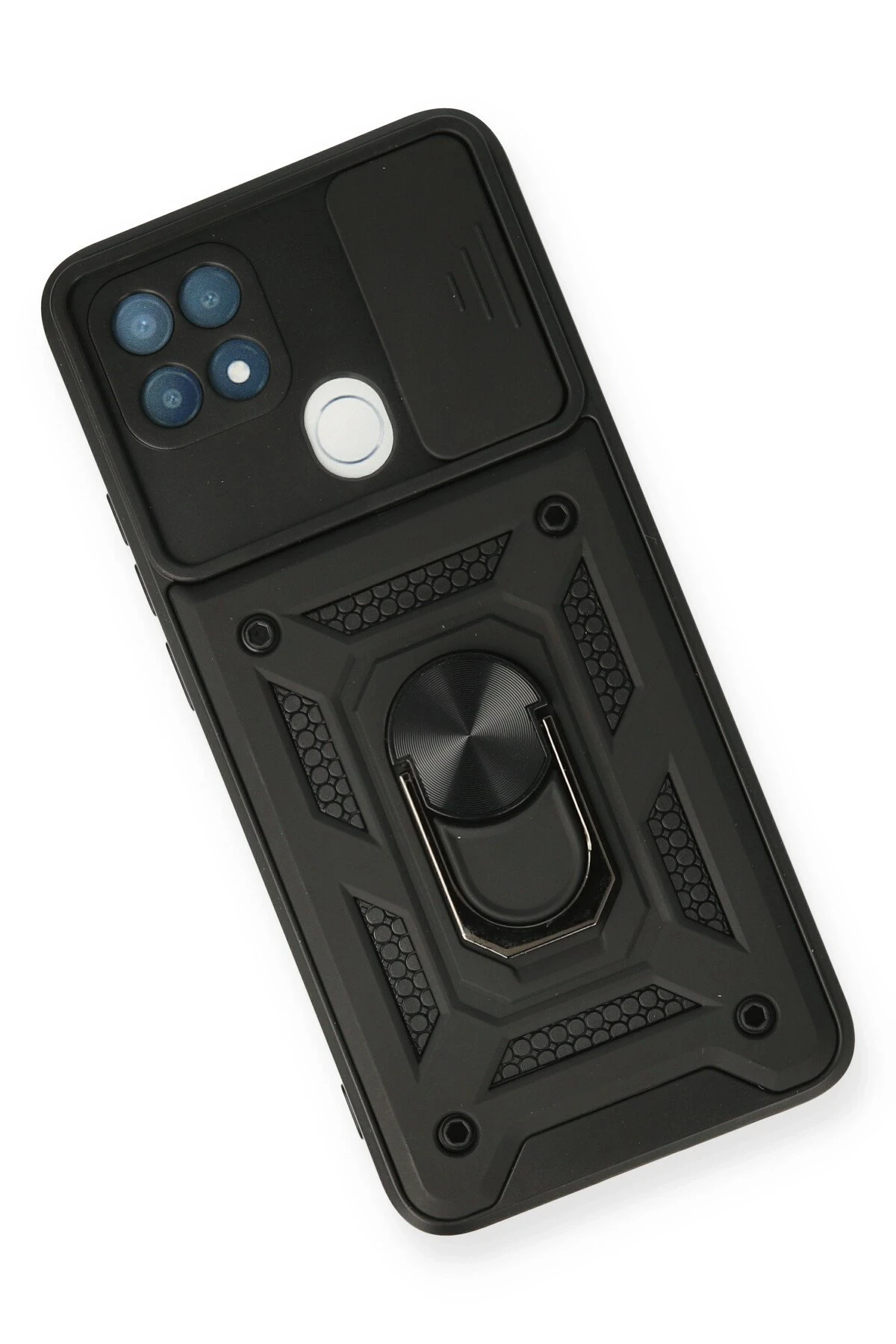 Newface Oppo A15 Kılıf Pars Lens Yüzüklü Silikon – Siyah
