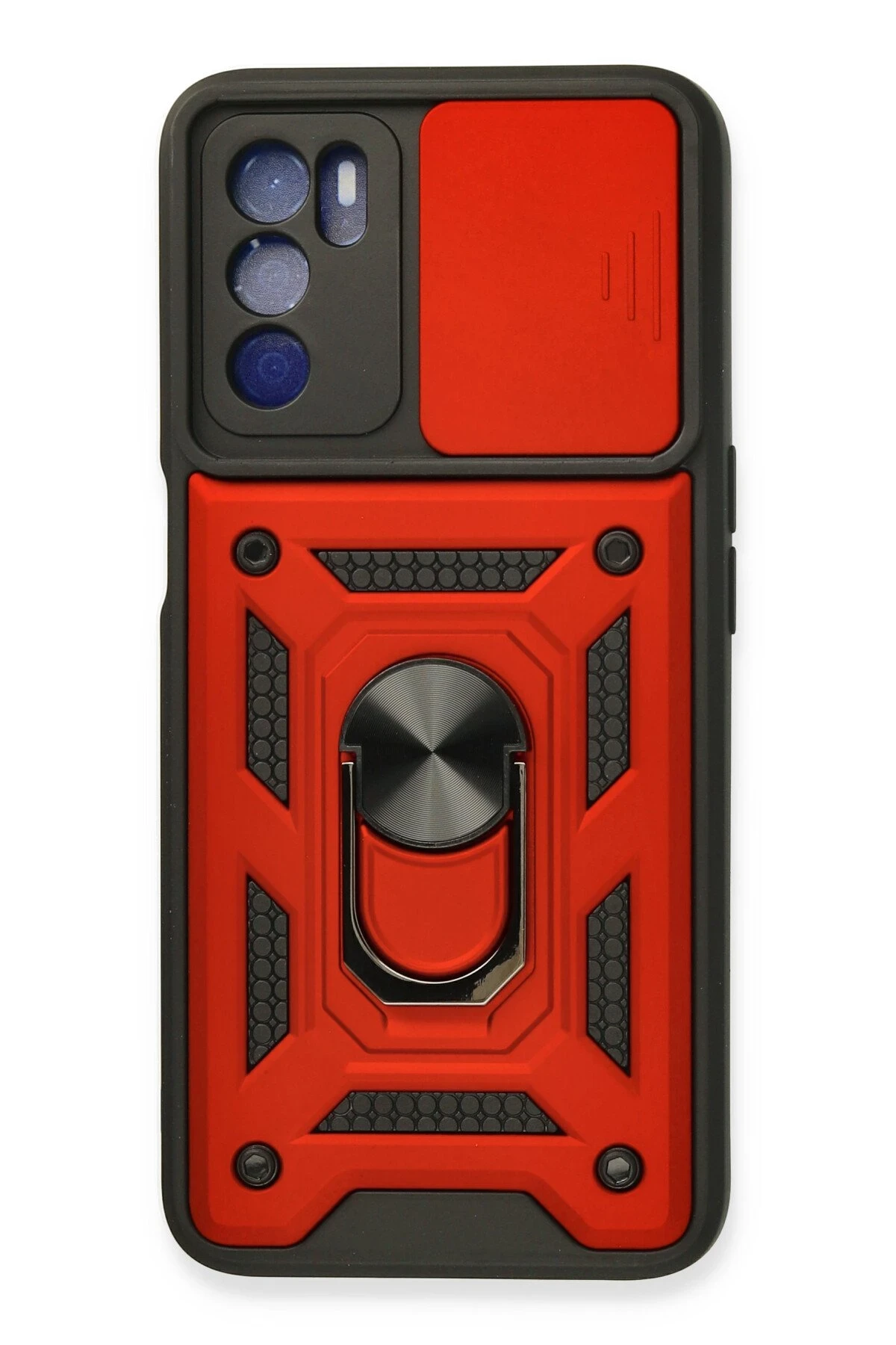 Newface Oppo A16 Kılıf Pars Lens Yüzüklü Silikon – Kırmızı